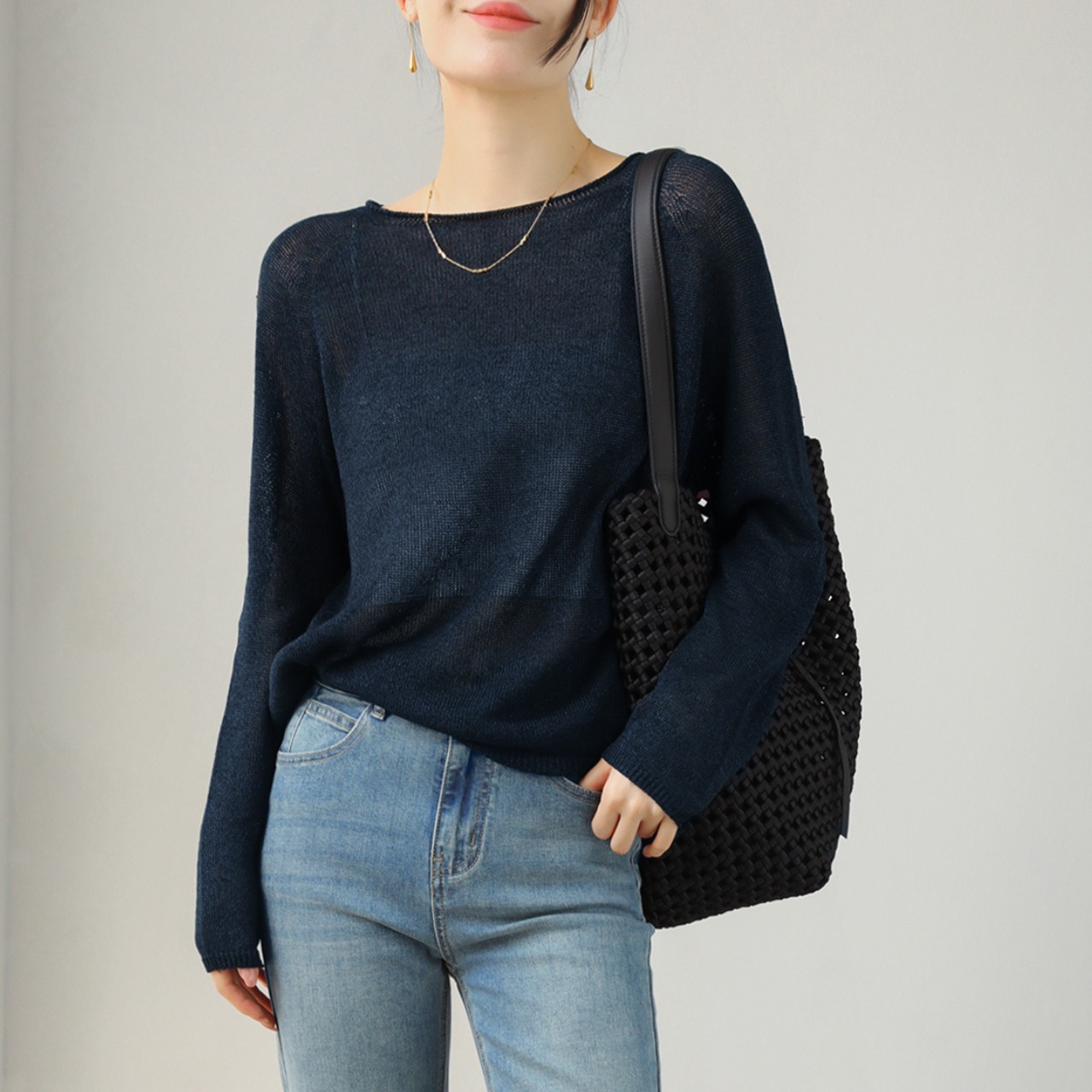 トレンド感満載のペーパー糸を使用した日焼け防止効果のあるロングスリーブセーターです。軽やかな編み方が施されており、肌に優しく、蒸れにくいのも特徴。おしゃれなシルエットは、カジュアルからフォーマルまで幅広いシーンにマッチします。夏の日差しや春のひんやりとした風からもしっかり保護されるため、実用性とファッション性を兼ね備えたアイテムとしてお勧めです。このセーターを着ることで、あなたの個性をさらに引き立てることができるでしょう。