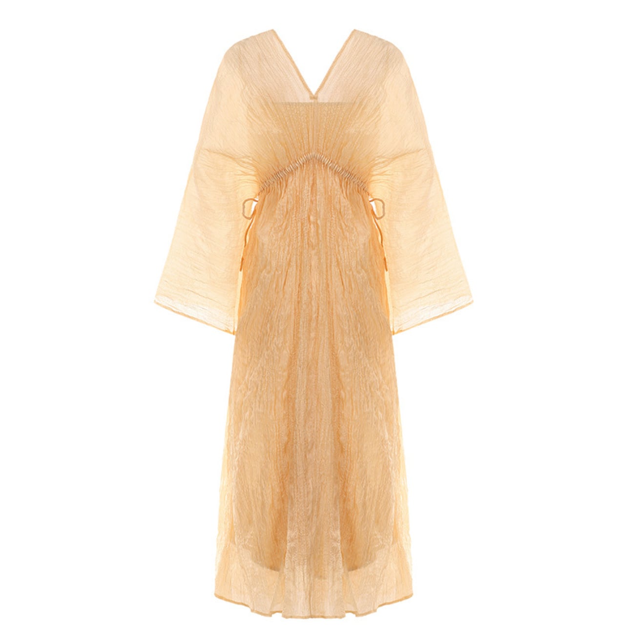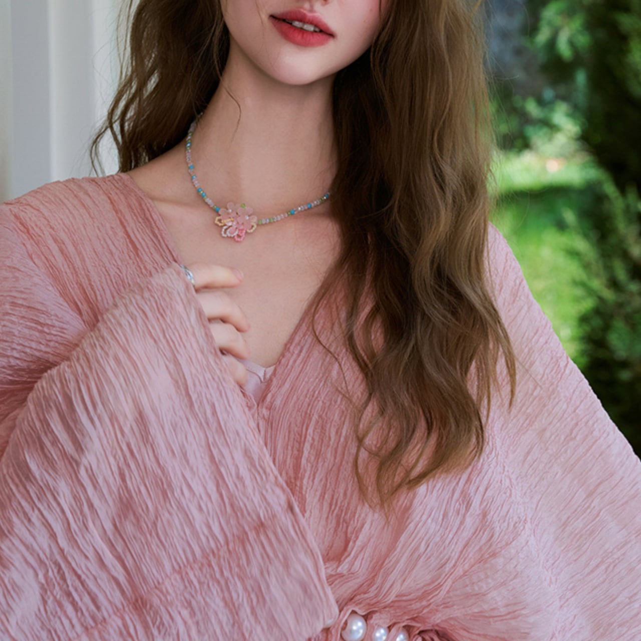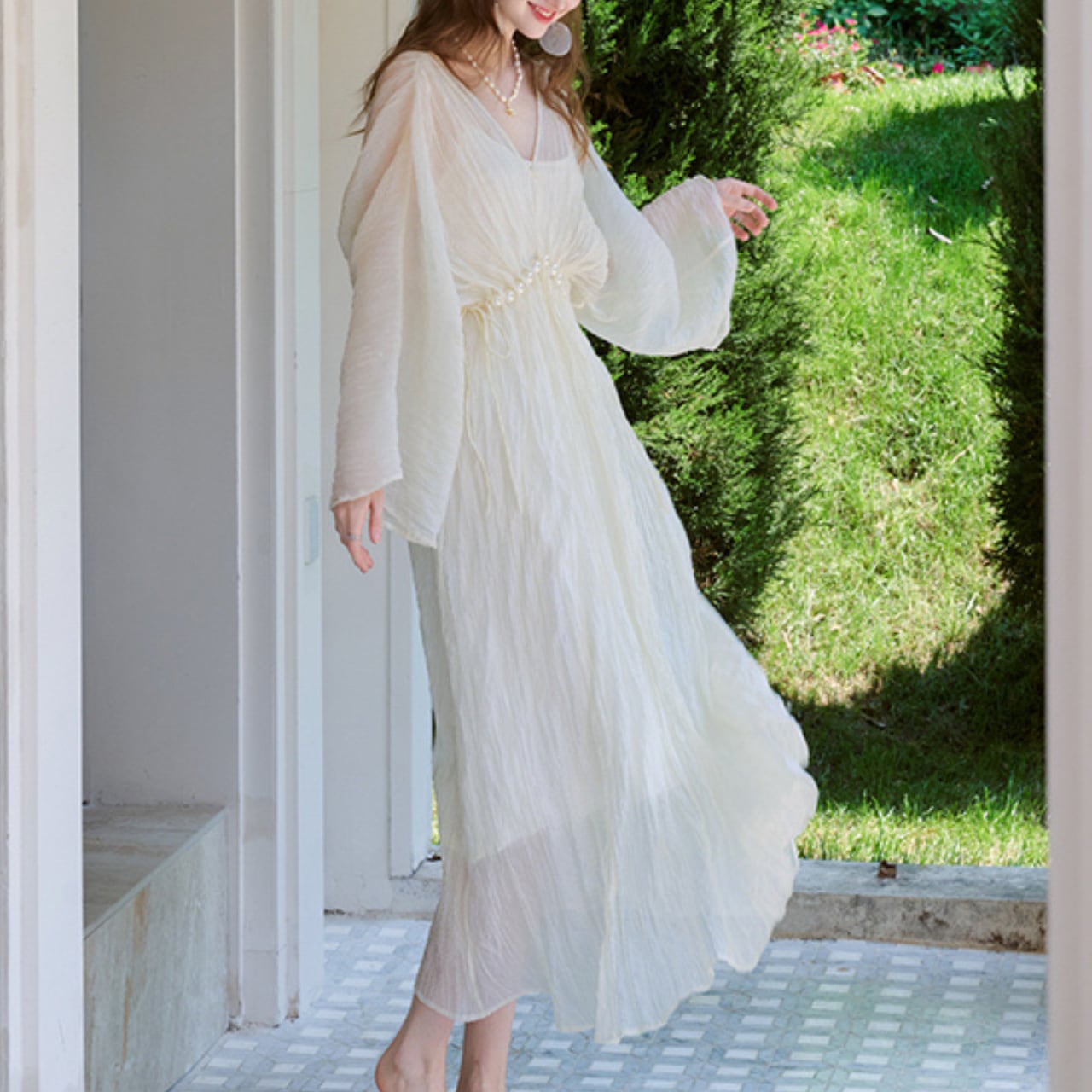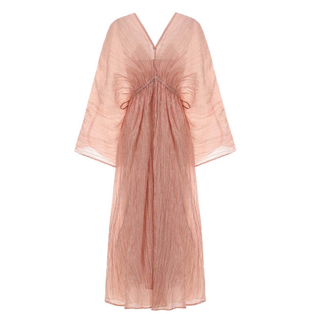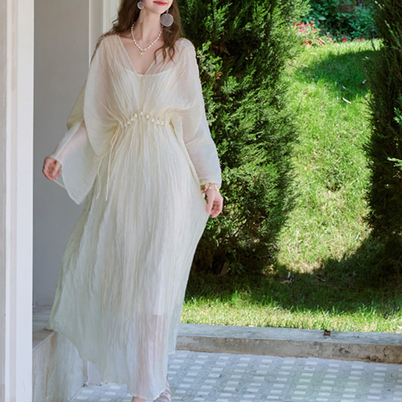 Handmade acetate wrinkle pearl pleated waist dress K00045