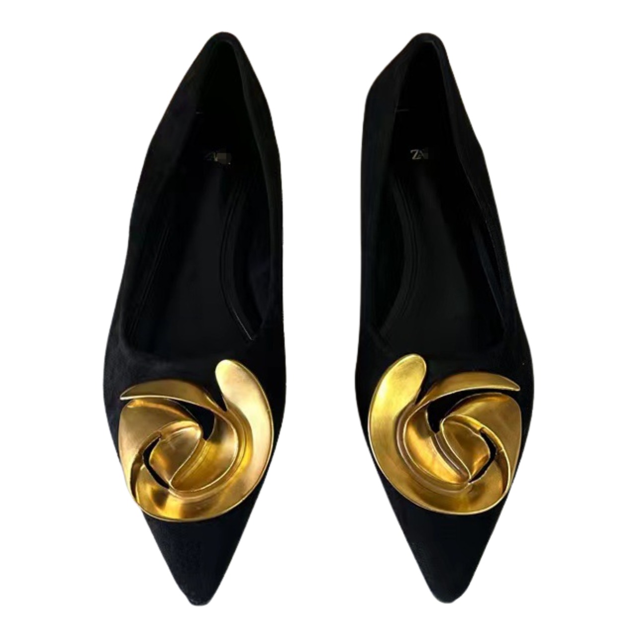 French high-end flat shoes pointed toe shallow mouth metal flower shoes K00130