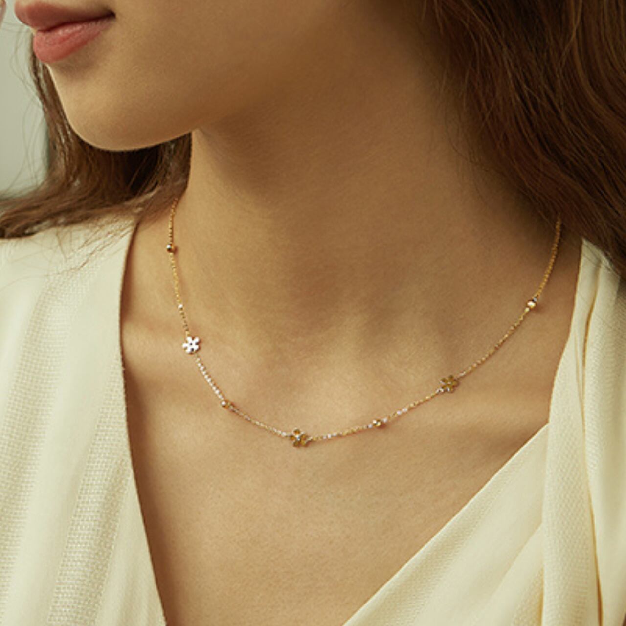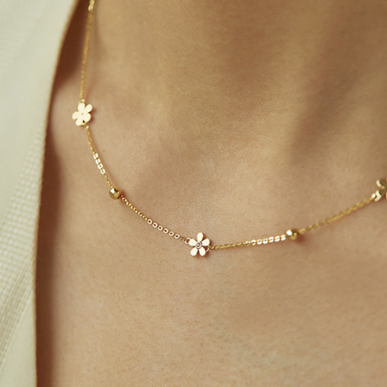 ネックレスの長さ:43cm、花のモチーフの直径:3cm