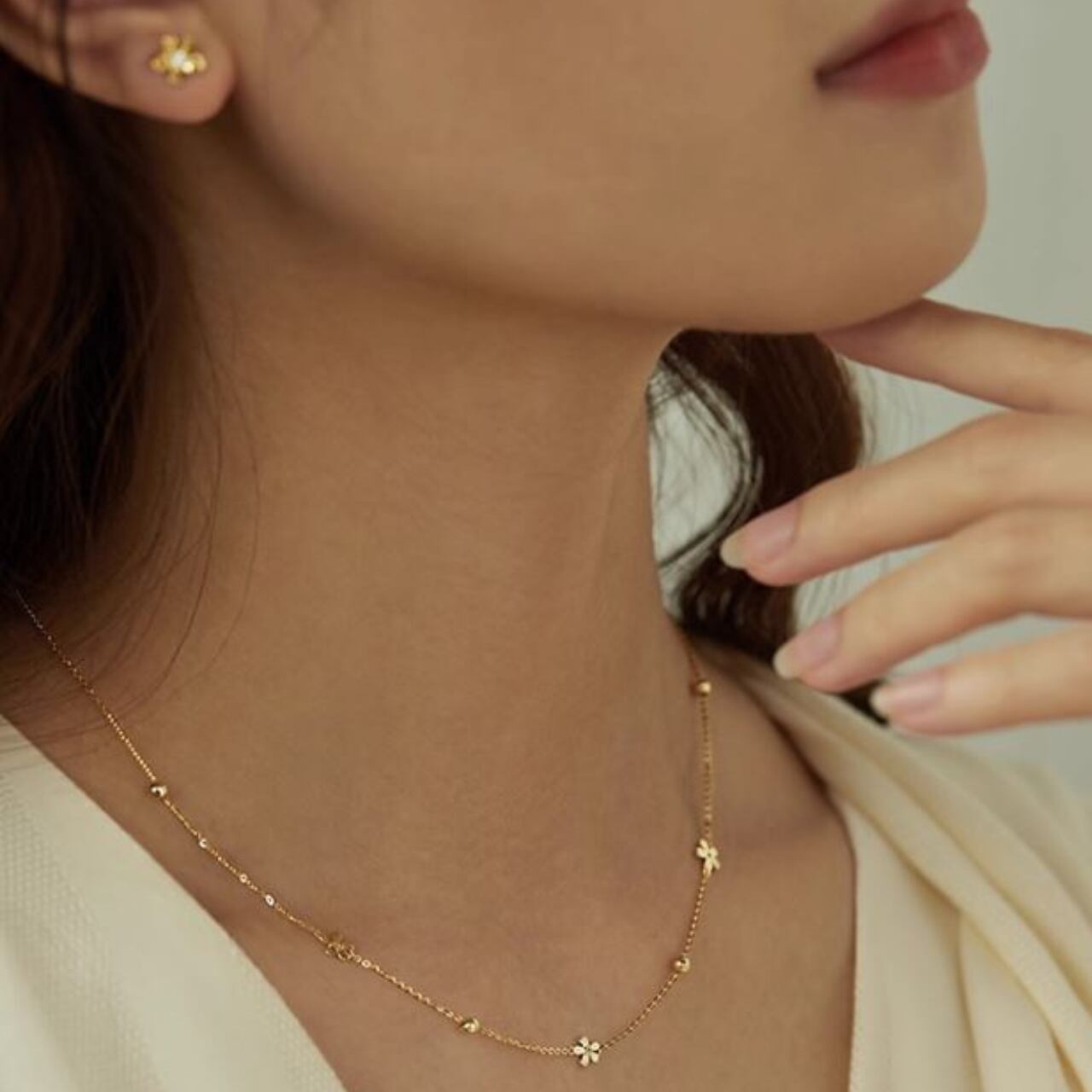 ゴールドフラワースタイルの美しいネックレスは、どんなシーンにも華やかさを添える一品です。華奢ながらも存在感のあるデザインは、カジュアルからフォーマルまで幅広く活躍します。花モチーフにはクリスタルが施され、光を受けて輝きます。日常使いにも特別な日にも、スタイルを引き立てるアクセントとなることでしょう。シンプルなコーディネートとも相性抜群で、あなたの魅力をさらに引き立てます。