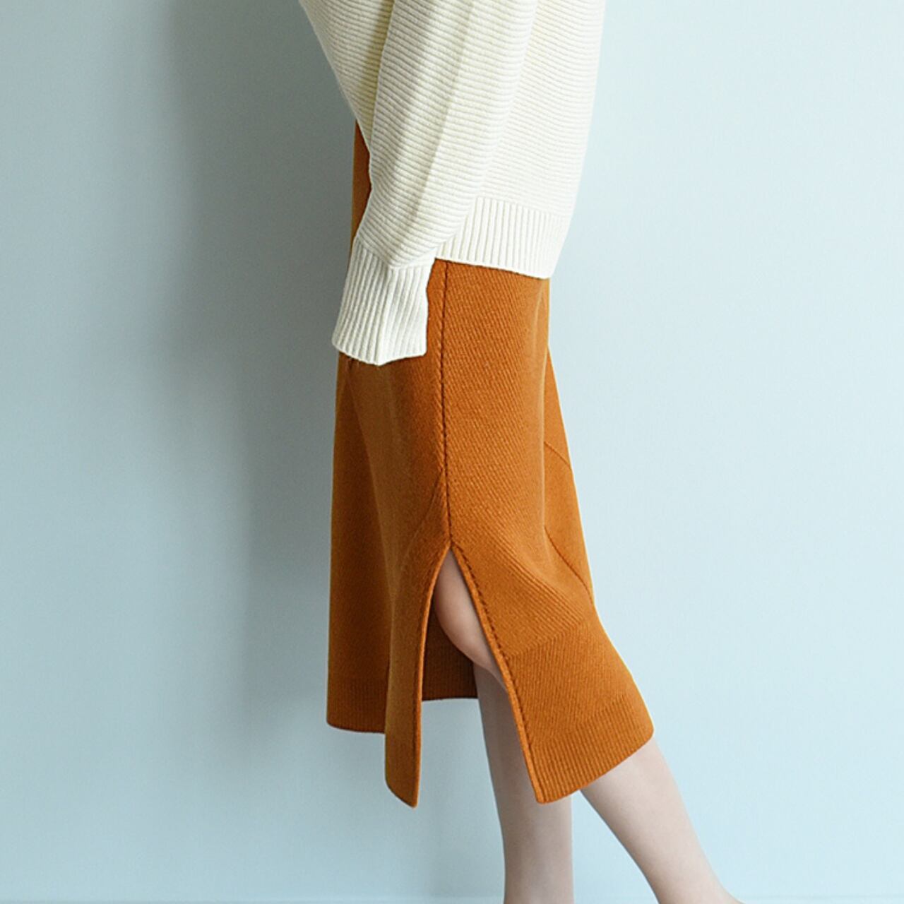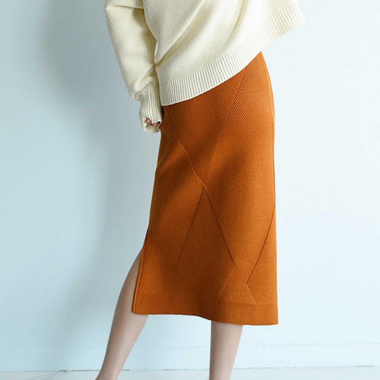 Autumn/Winter slim-one side slit knitted stretch skirt K00159