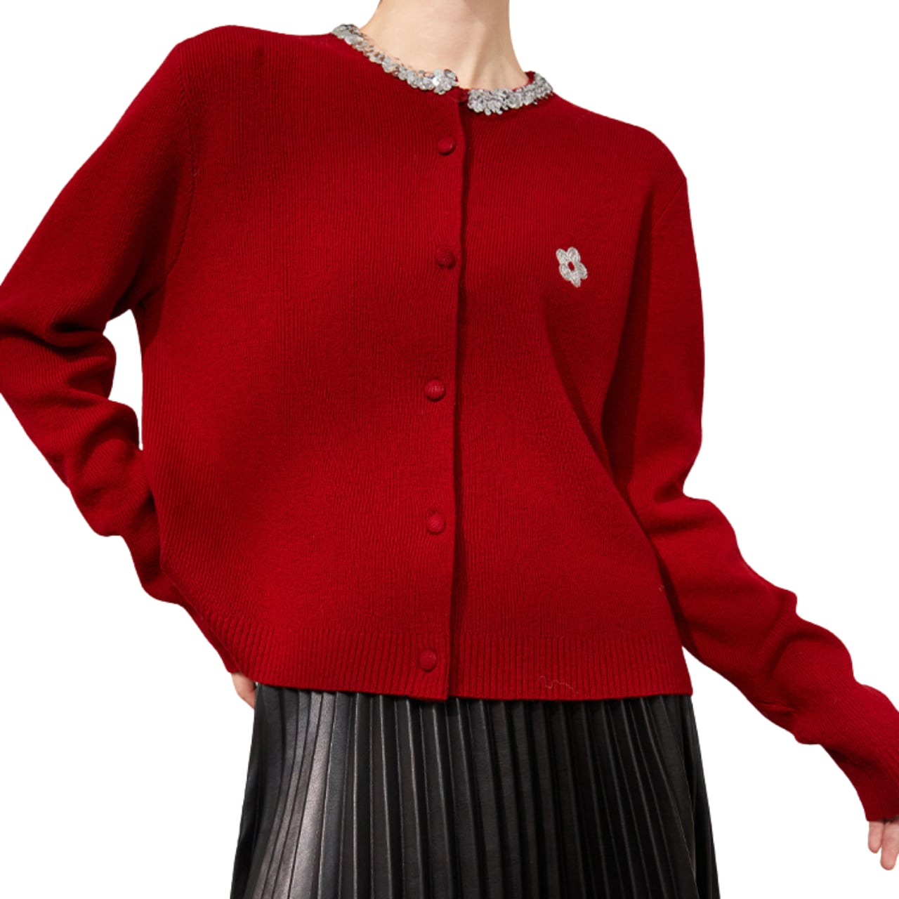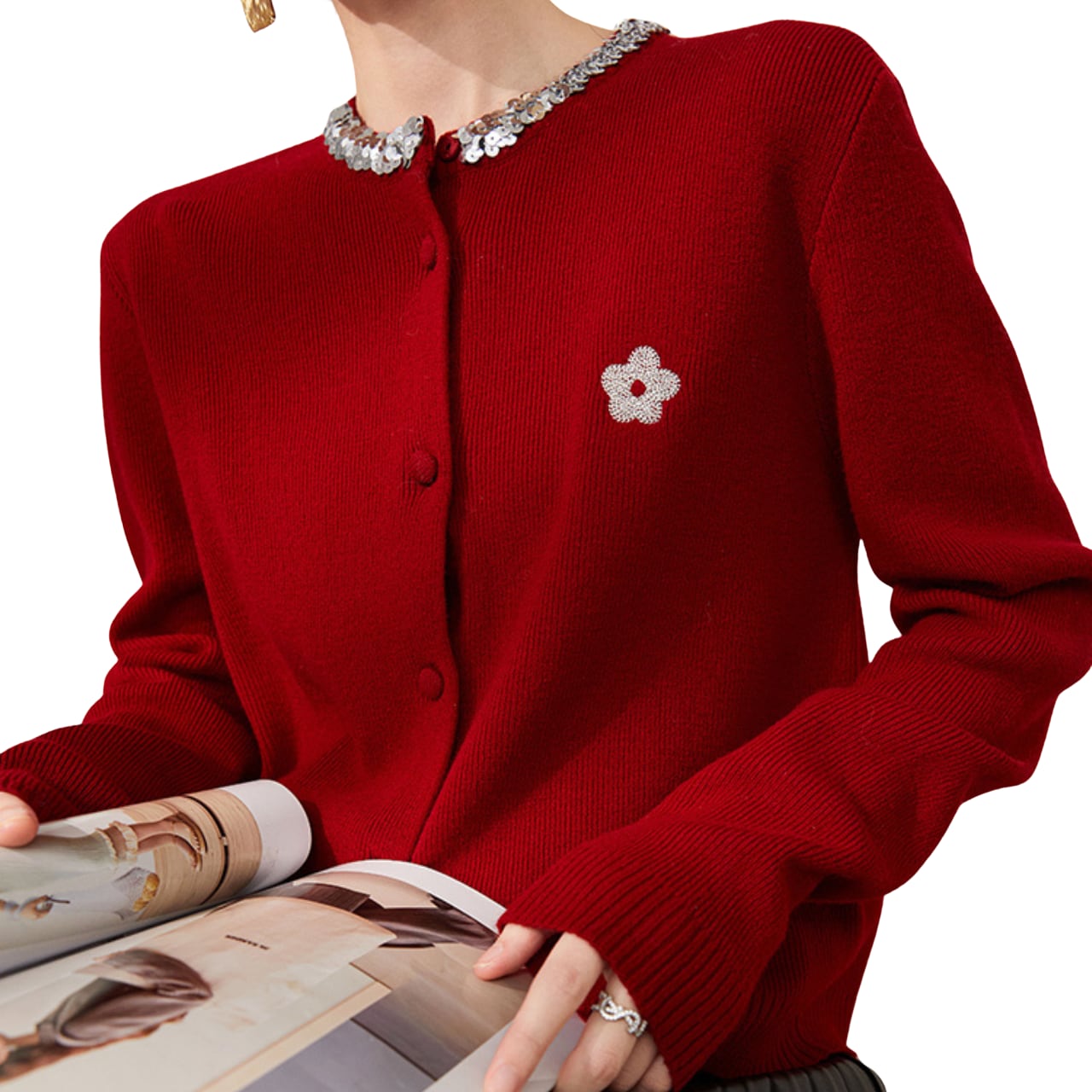 Winter knitted simple sequin cardigan K00069