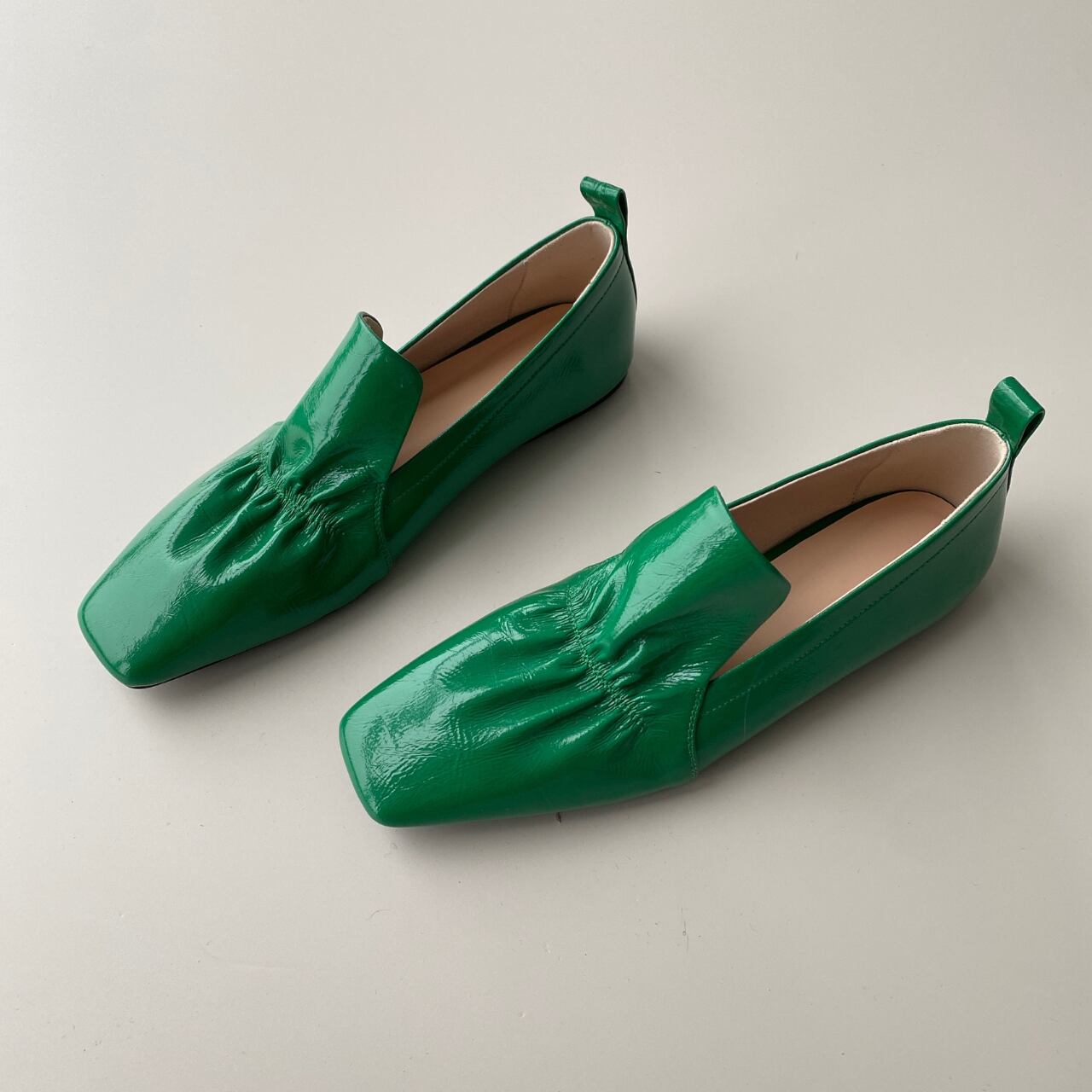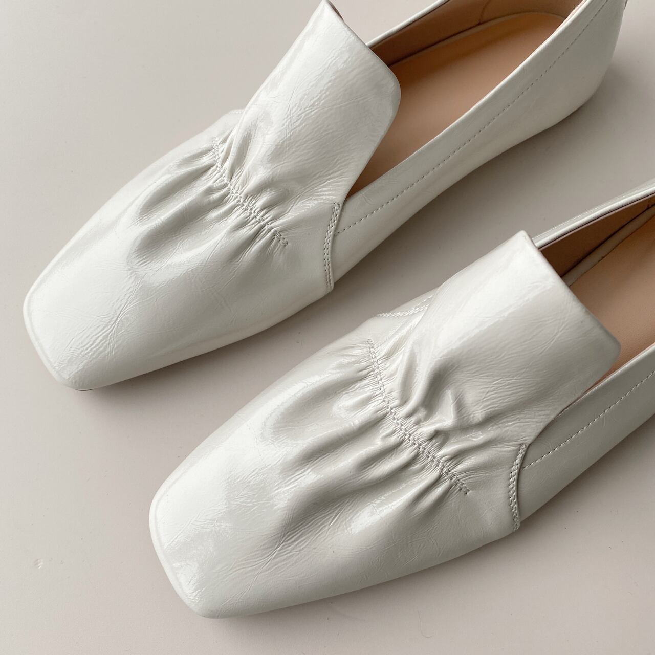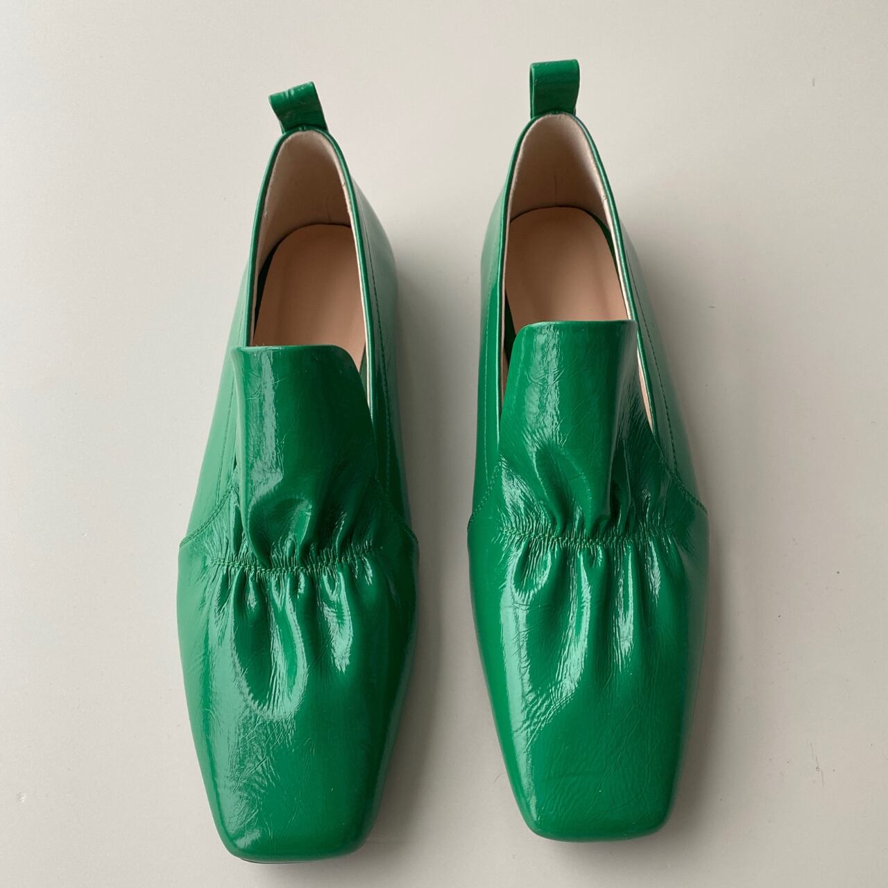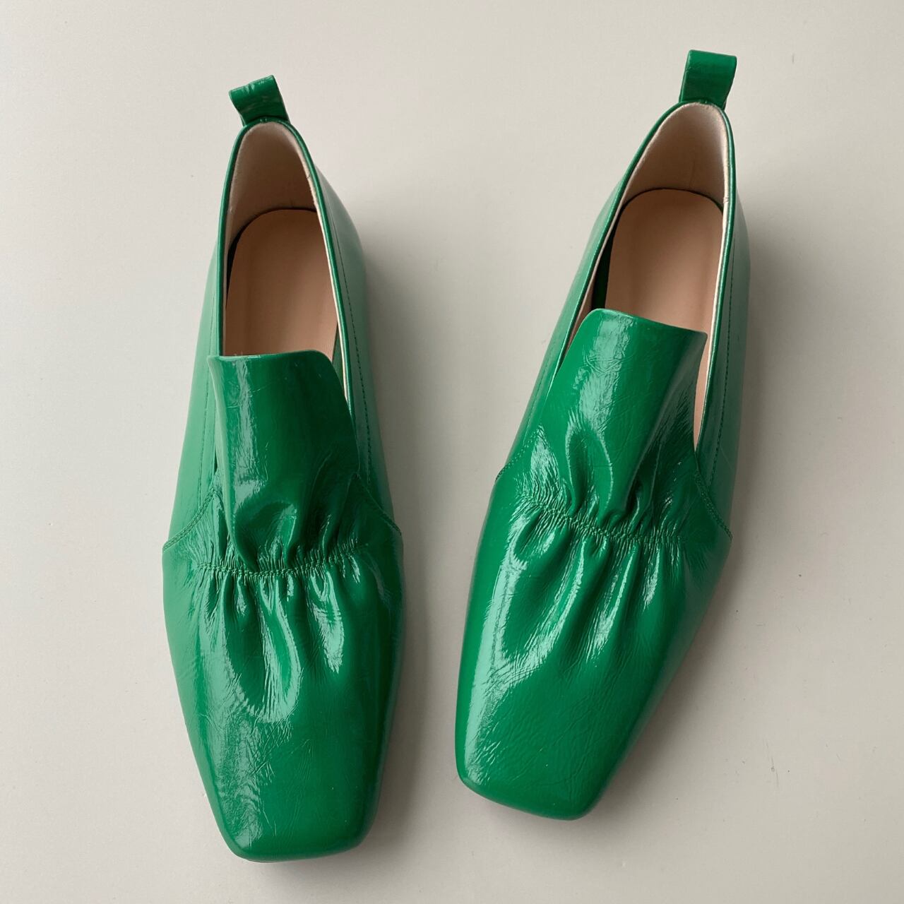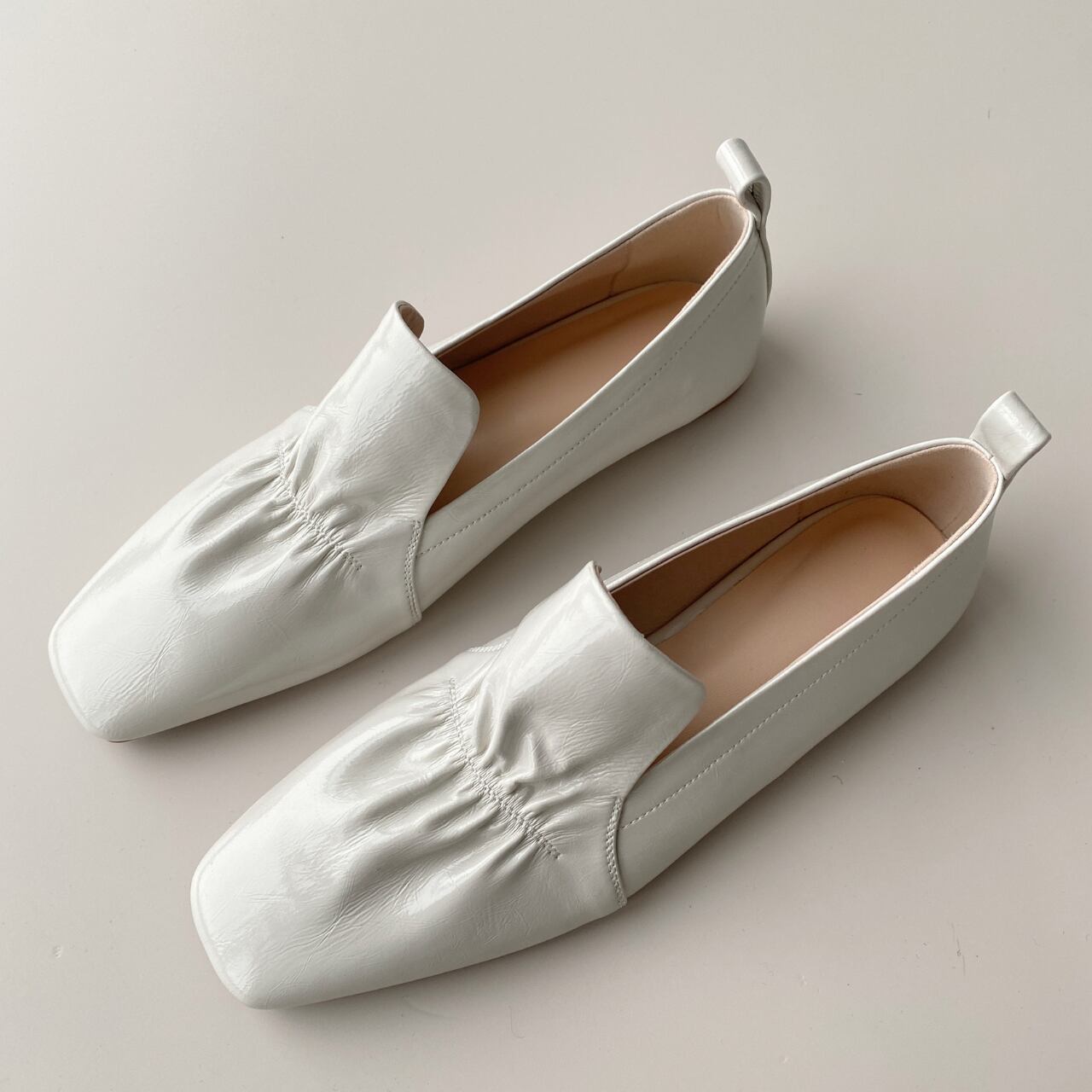 この靴は、シンプルながらも存在感のあるデザインが魅力のフラットシューズです!スクエアトゥが特徴的で、スタイリッシュさを演出しつつ、快適な履き心地を実現しました。足にフィットする柔軟性と、デイリーから特別なシーンまで活躍する万能な一足となっています。多彩なカラー展開で、さまざまなコーディネートに合わせやすいのも嬉しいポイントです。