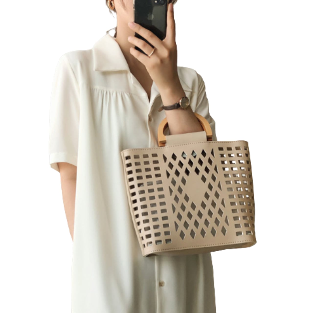 このレトロなウッドリングホロースタイルのハンドバッグは、エレガントでありながらもユニークなデザインが魅力的なアイテムです!天然素材の温もりが感じられ、どんなコーディネートにも合わせやすく、普段使いからお出かけまで幅広く活躍します。軽量で持ち運びも楽々なので、デイリーユースにも大変おすすめです。バッグ内部にはしっかりとしたスペースがあり、必要なアイテムをしっかりと収納できます。このバッグと共に、あなたのスタイルに新たな魅力をプラスしてみませんか。