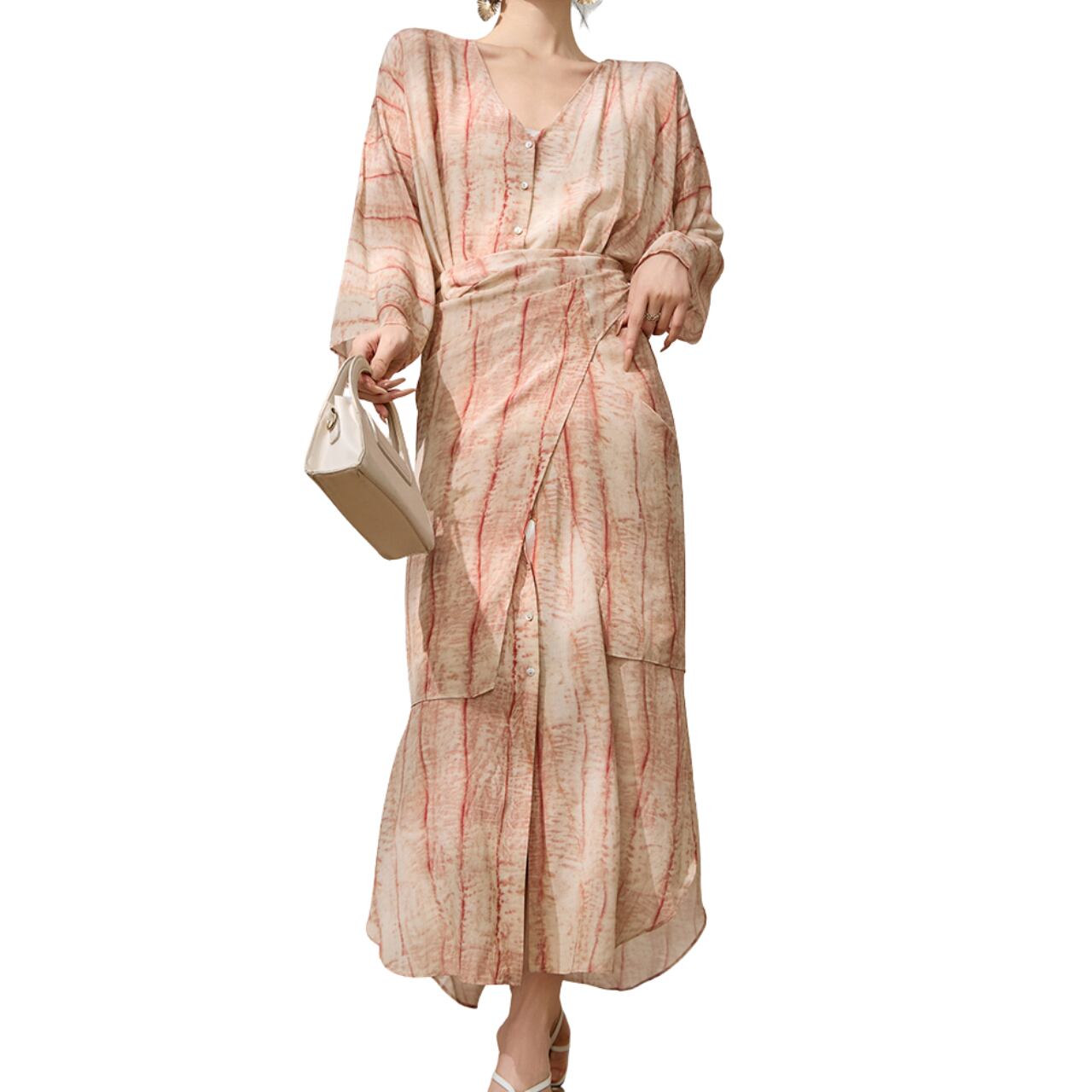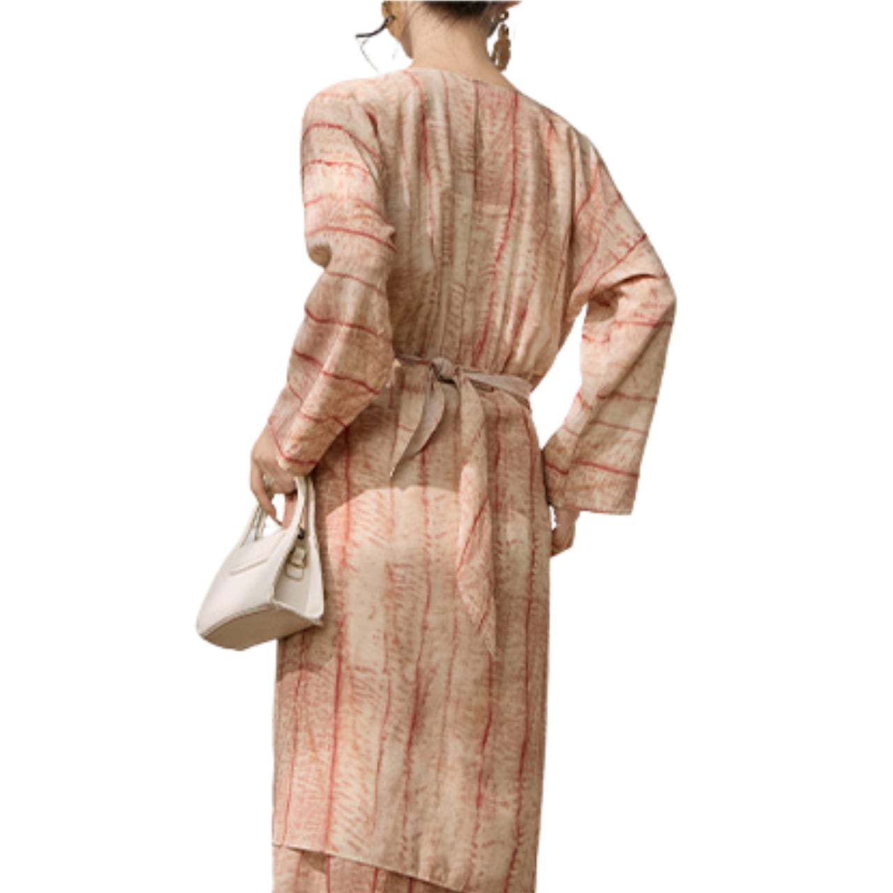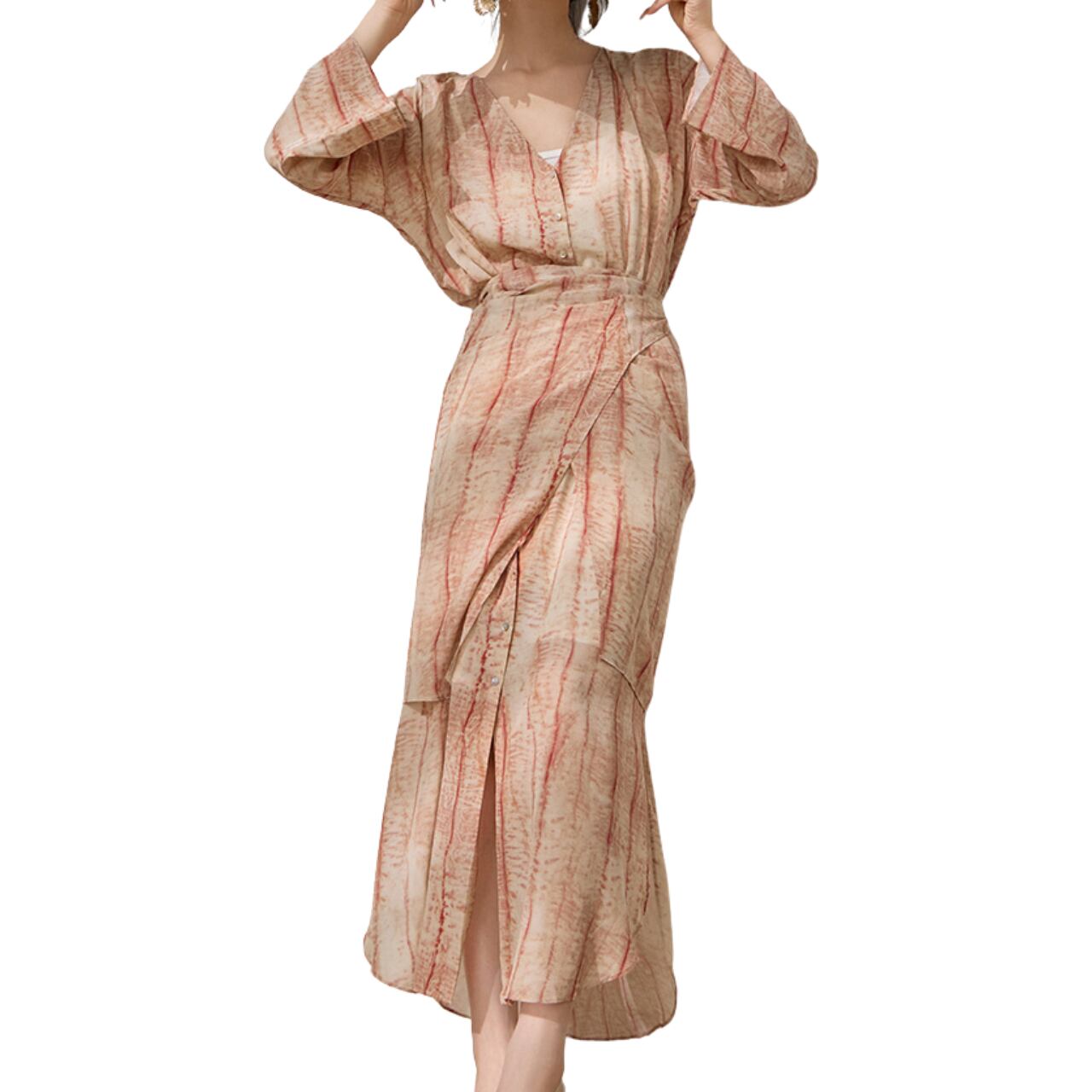 このセットアップは、ビーチにもぴったりなスタイリッシュなアイテムです。レトロなVネックデザインとトレンドを反映したシルエットが特長で、リラックスした印象を与えます。軽やかな素材感が快適さを保ちながら、さまざまなシーンで活躍します。ビーチパーティーやリゾート地でのデートスタイルにぴったりで、あなたの魅力を最大限に引き出します。このドレスを身にまとい、特別な瞬間を楽しんでみません。