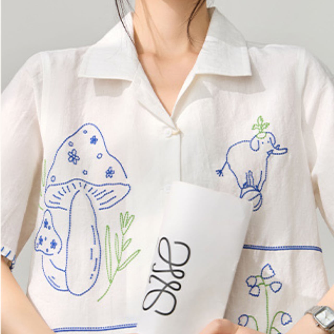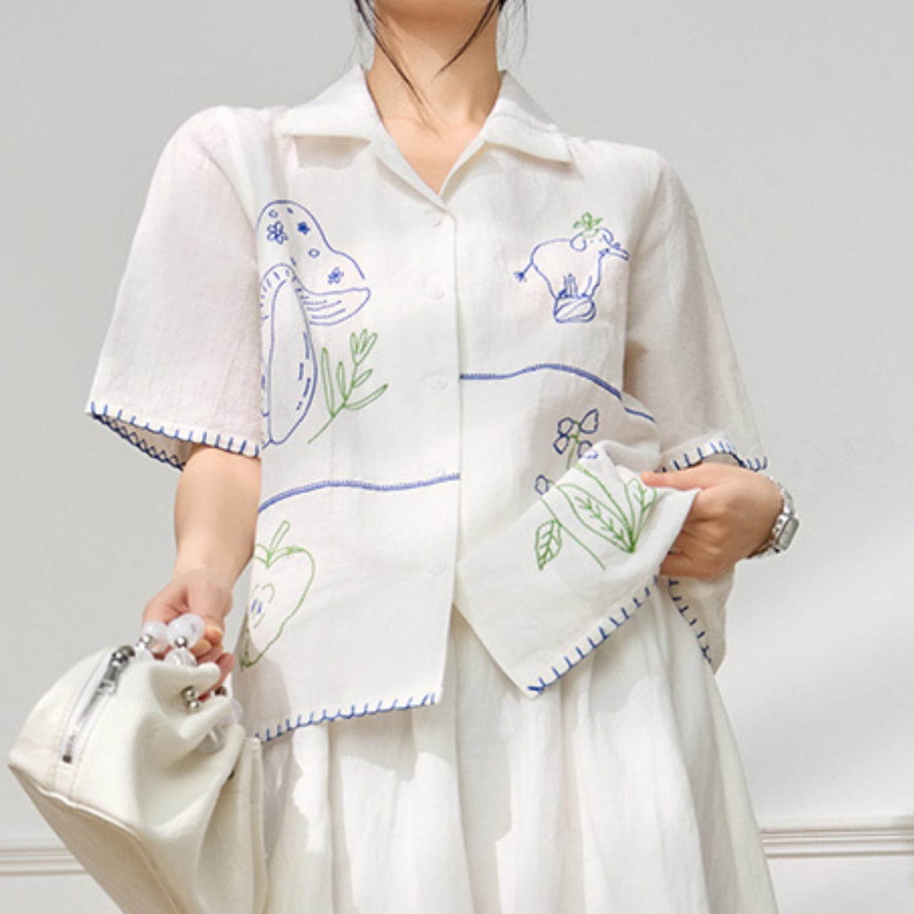Thin summer embroidered A-line tops K00102