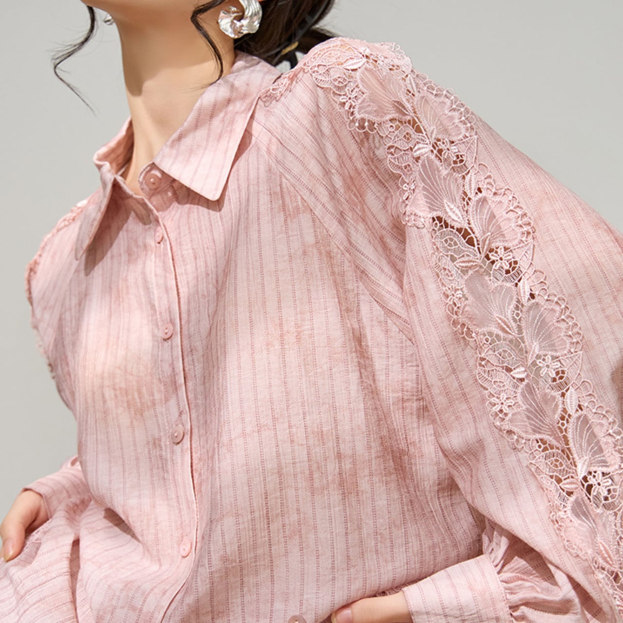このトップスは、華やかでありながらもシンプルなデザインが嬉しい一品です。繊細なレースとポロカラーが、上品な印象を与え、デイリーから特別な日まで幅広いシーンで活躍します。ロング丈により、気になる体型カバーもしつつ、レイヤードスタイルにもぴったりです。このトップスを通じて、あなたのスタイルに新しいエッセンスを加えてみませんか。