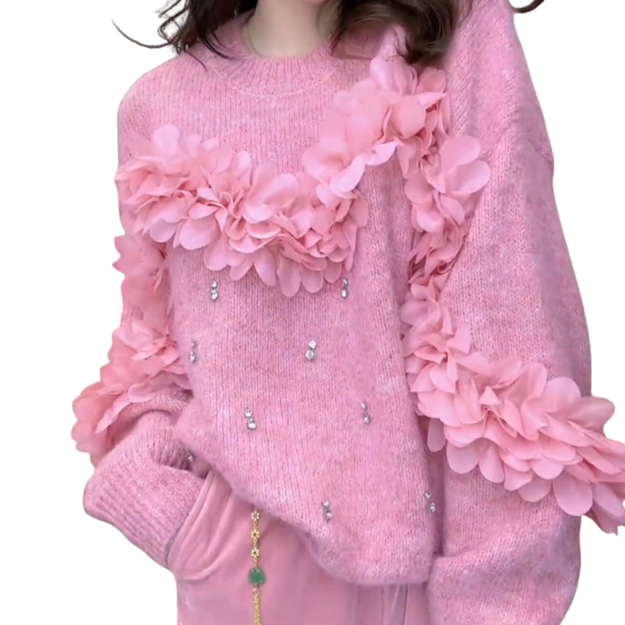 この秋冬シーズンにぴったりな「三次元花トッパー」は、華やかなデザインと上品さを兼ね備えています。立体的な花の装飾がアクセントになり、シンプルなスタイルでも一気におしゃれ感を引き立てます。快適な着心地を実現する柔らかい素材で、デイリーコーデはもちろん、特別なイベントにも最適です。どんなボトムスとも相性が良く、様々なシーンでご活用いただけるアイテムです。