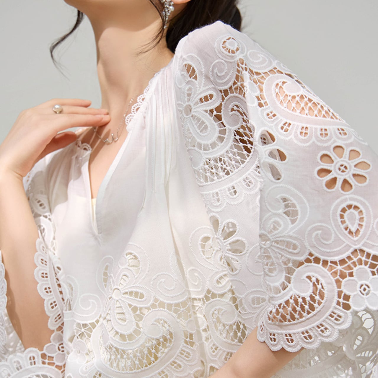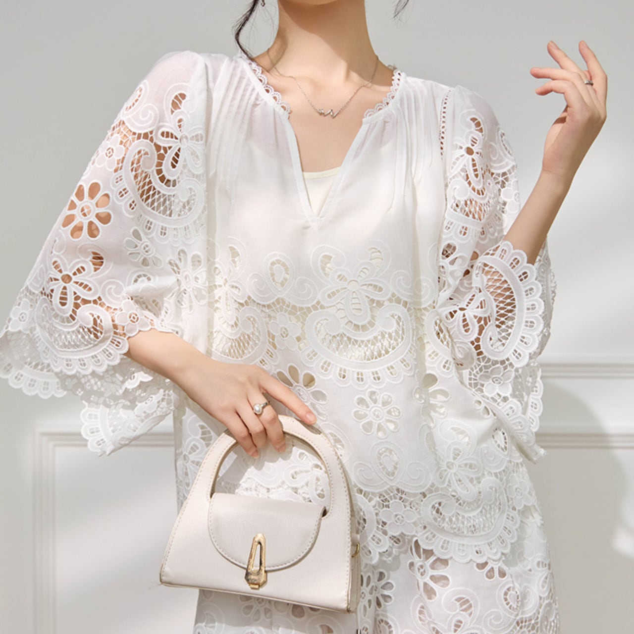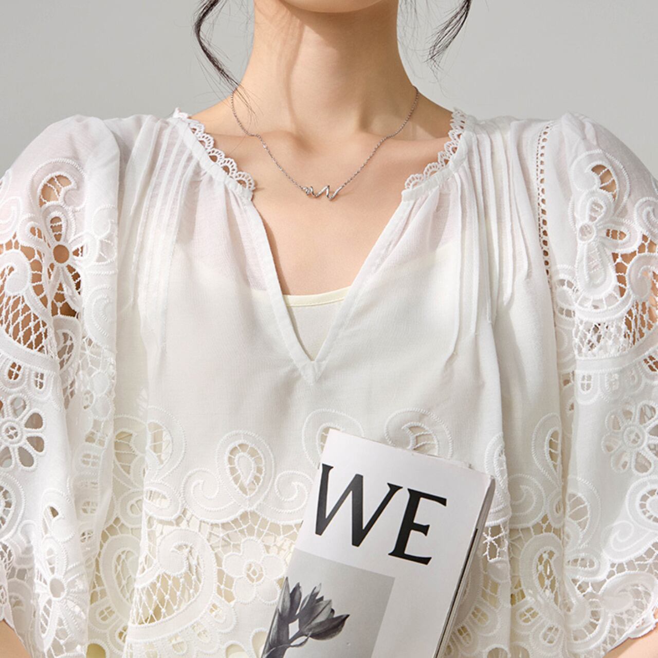 このトップスは、洗練されたデザインと上品な印象を持つトップスです。特に特徴的なホローデザインは、軽やかさを演出しながらも、しっかりとした存在感を感じさせます。シンプルながらもエレガントさを兼ね備えたこのトップスは、日常使いから特別なイベントまで幅広く対応できるアイテムです。おしゃれに差をつけたい方におすすめで、様々なボトムスとも合わせやすく、コーディネートの幅が広がります。