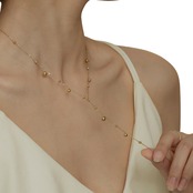 このネックレスは、シンプルな中にも高級感が漂う優れたデザインが魅力です。流れるようなタッセルが華やかに揺れ、デコルテラインを美しく引き立てます。カジュアルなスタイルからフォーマルなシーンまで、幅広く活躍できるアイテムで、どんなコーディネートにも合わせやすいです。軽やかな素材感と洗練されたデザインが一体となり、瞬時にあなたのスタイルを格上げします。特別な日の装いはもちろん、日常使いにもぜひおすすめしたいネックレスです。