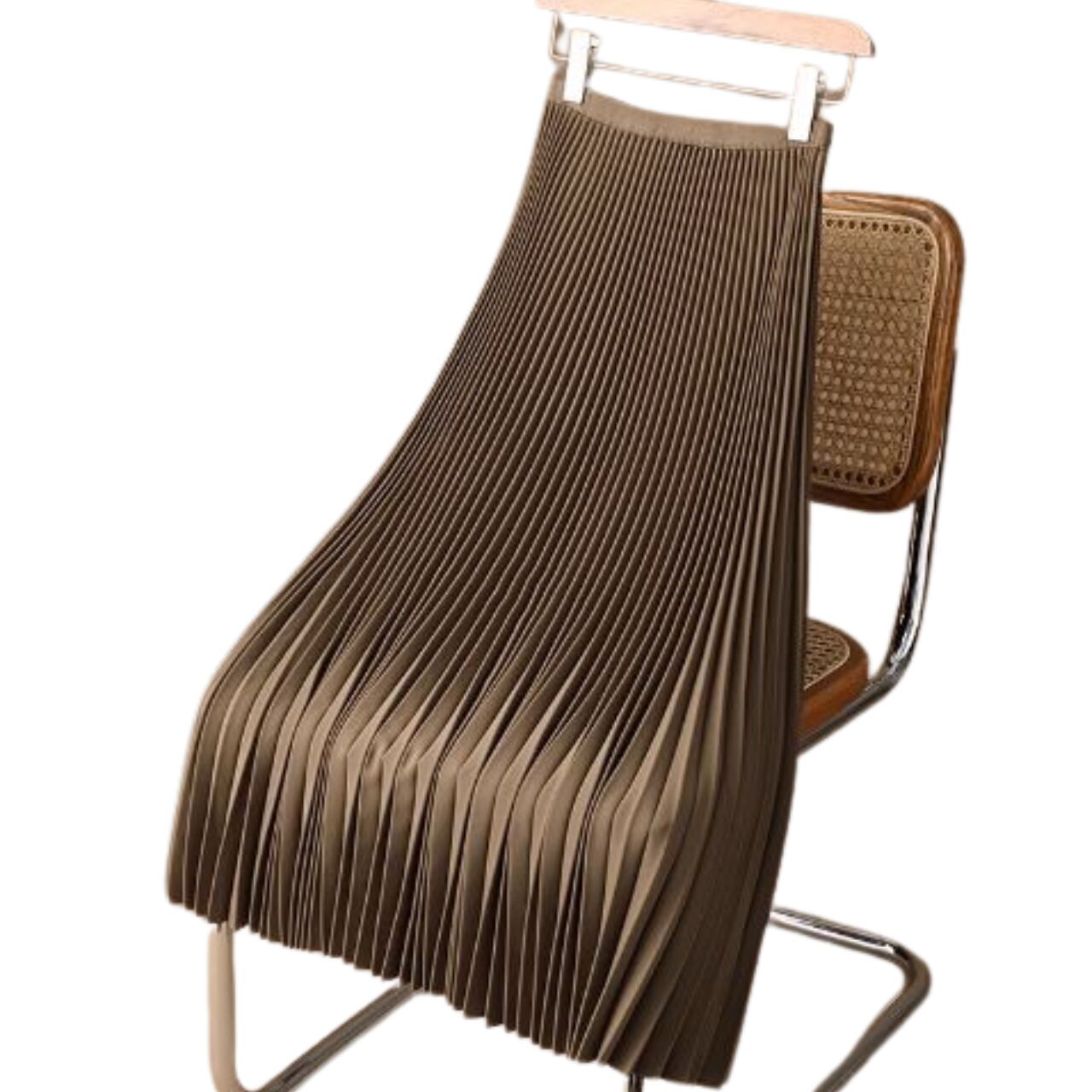 このスカートは、エレガントなデザインが際立つミッドレングスのハイエンドスカートです。ドレープ加工されたプリーツが柔らかく流れるようなシルエットを生み出し、女性らしさを引き立ててくれます!高品質な素材を使用しており、動くたびに華やかさを感じることができます。カジュアルなトップスからフォーマルなブラウスまで、どんなスタイルにもマッチします。季節を問わず活躍する一着として、ぜひワードローブに迎えてください。
