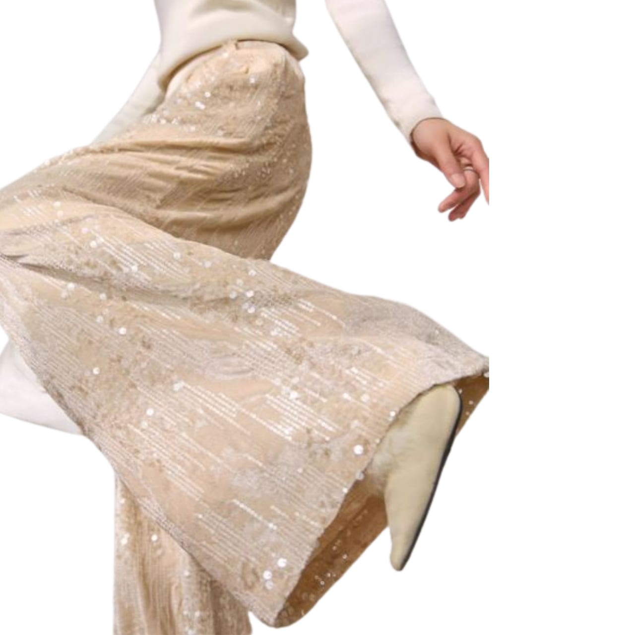 このセクシーなワイドレッグパンツは、高級感あふれるスパンコールが施された豪華なデザインがポイントです。スタイリッシュなシルエットは、どんなシーンにも洗練さをプラスし、足元をすっきりと美しく見せてくれます!柔らかな素材感と伸縮性があり、動きやすさも抜群です。カジュアルなお出かけからパーティーシーンまで、幅広く合わせやすいコーディネートが楽しめる一着です。このワイドレッグパンツで、華やかさとエレガンスを演出してみてはいかがでしょうか。