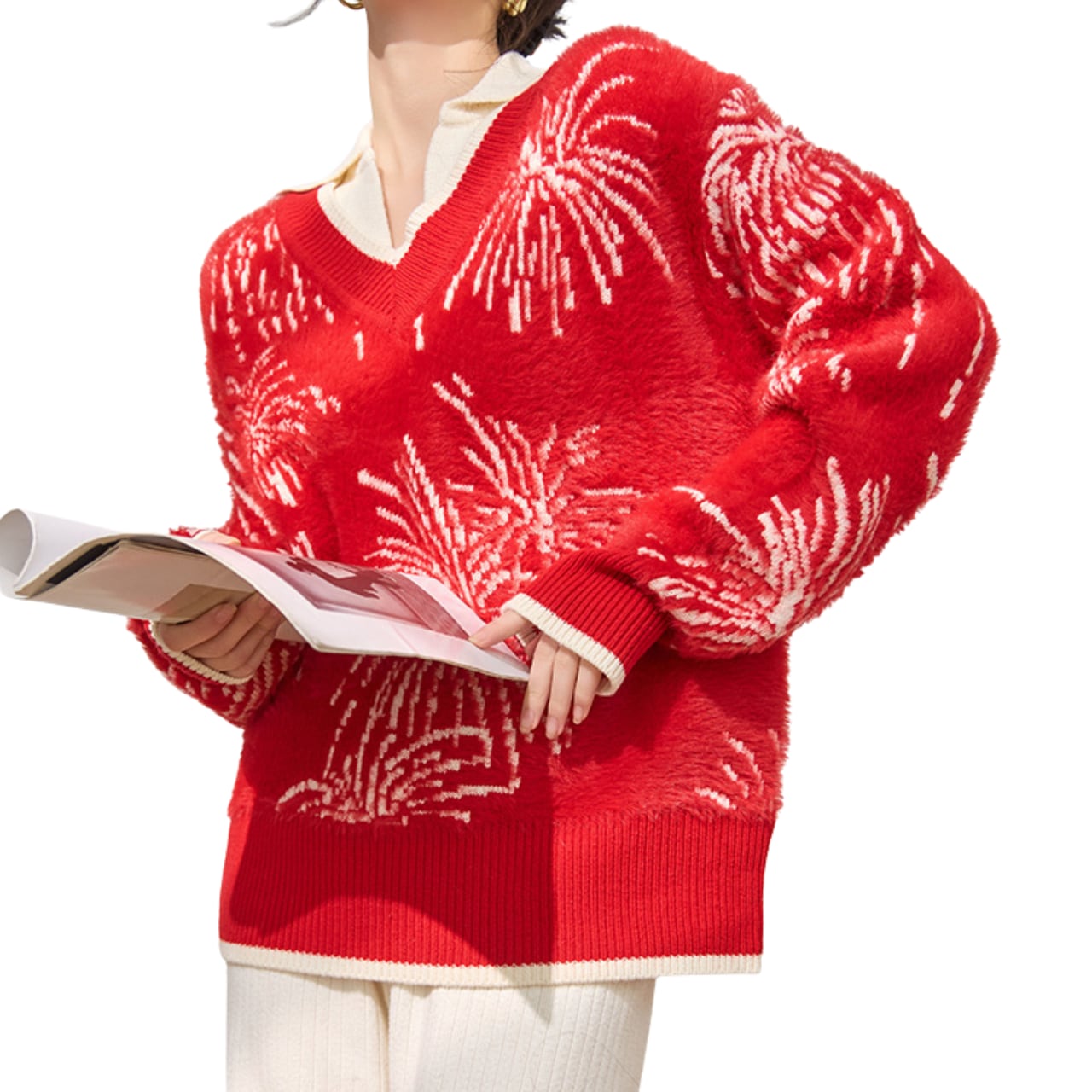 このニットセーターは、特別な瞬間を演出するためのアイテムです!温かみのある素材感と、洗練されたデザインが特徴で、様々なスタイルにマッチします。お祝いの場やカジュアルな集まりにも対応できる万能な一枚で、特にスカートやブーツとの組み合わせが抜群です。シンプルな jeans と合わせることで、エレガントとリラックスした印象を同時に楽しむことができるでしょう。このセーターを羽織ることで、あなたのコーディネートに華やかさをプラスします。