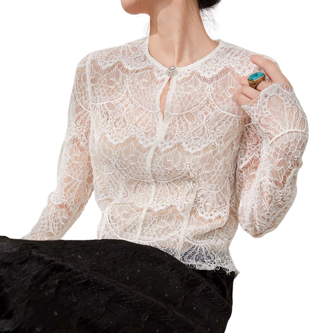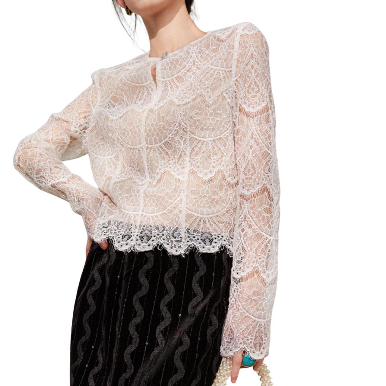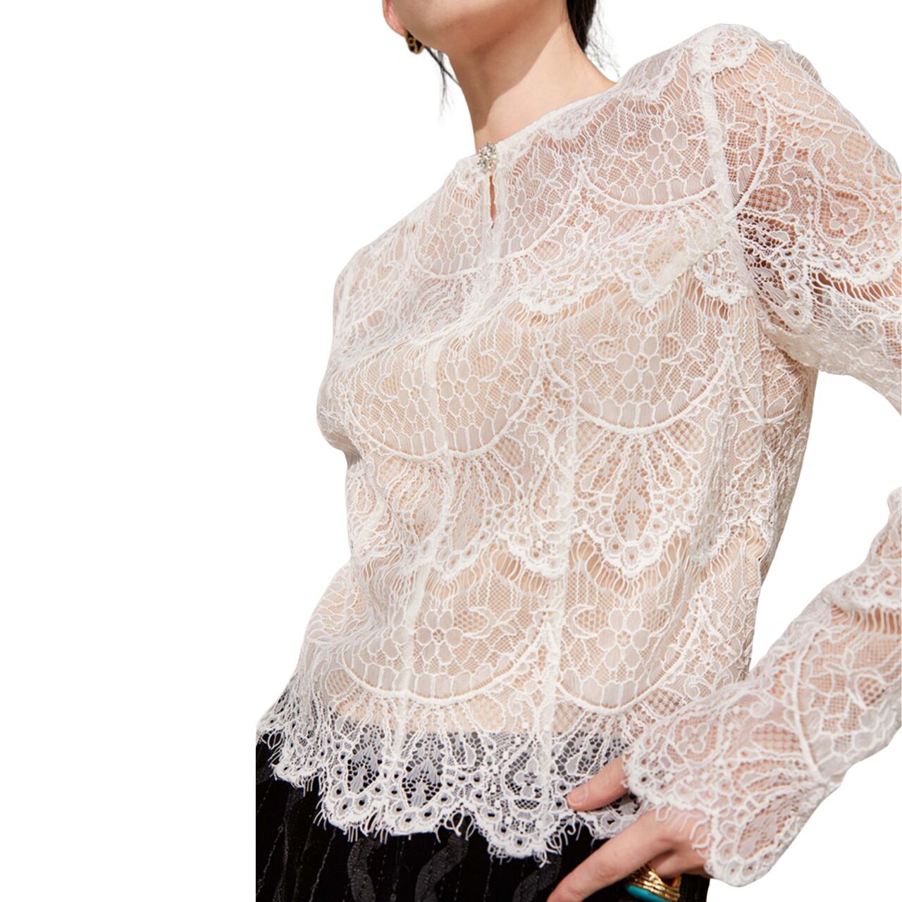 このトップスは、秋の装いにぴったりの華やかなレースデザインが特徴です!透け感のあるハロー素材が軽やかでありながら、エレガントな雰囲気を演出します。カジュアルなパンツやスカートと合わせることで、幅広いシーンで活躍するアイテムとなるでしょう。このトップスを取り入れることで、あなたのスタイルに独特のフェミニンさをプラスすることができるでしょう。