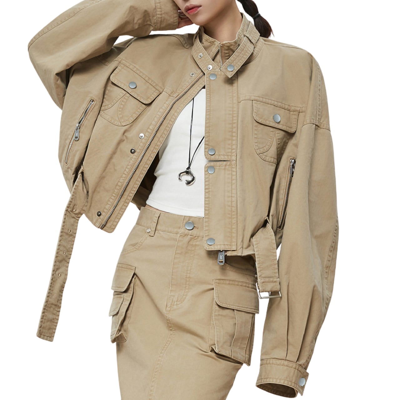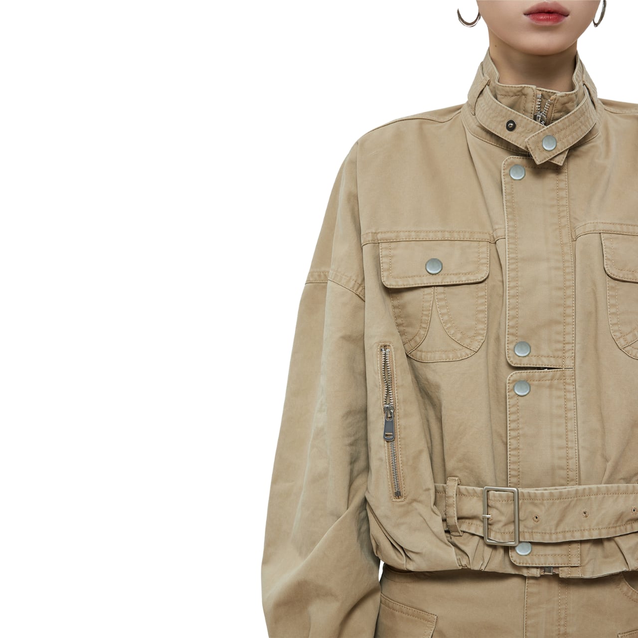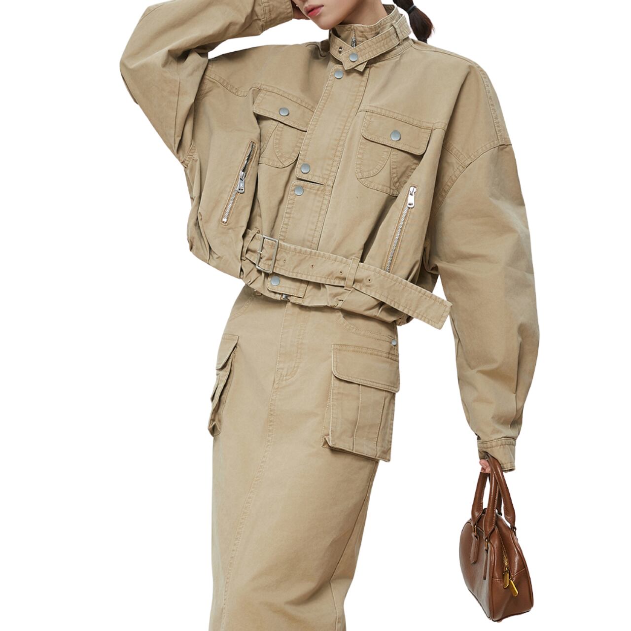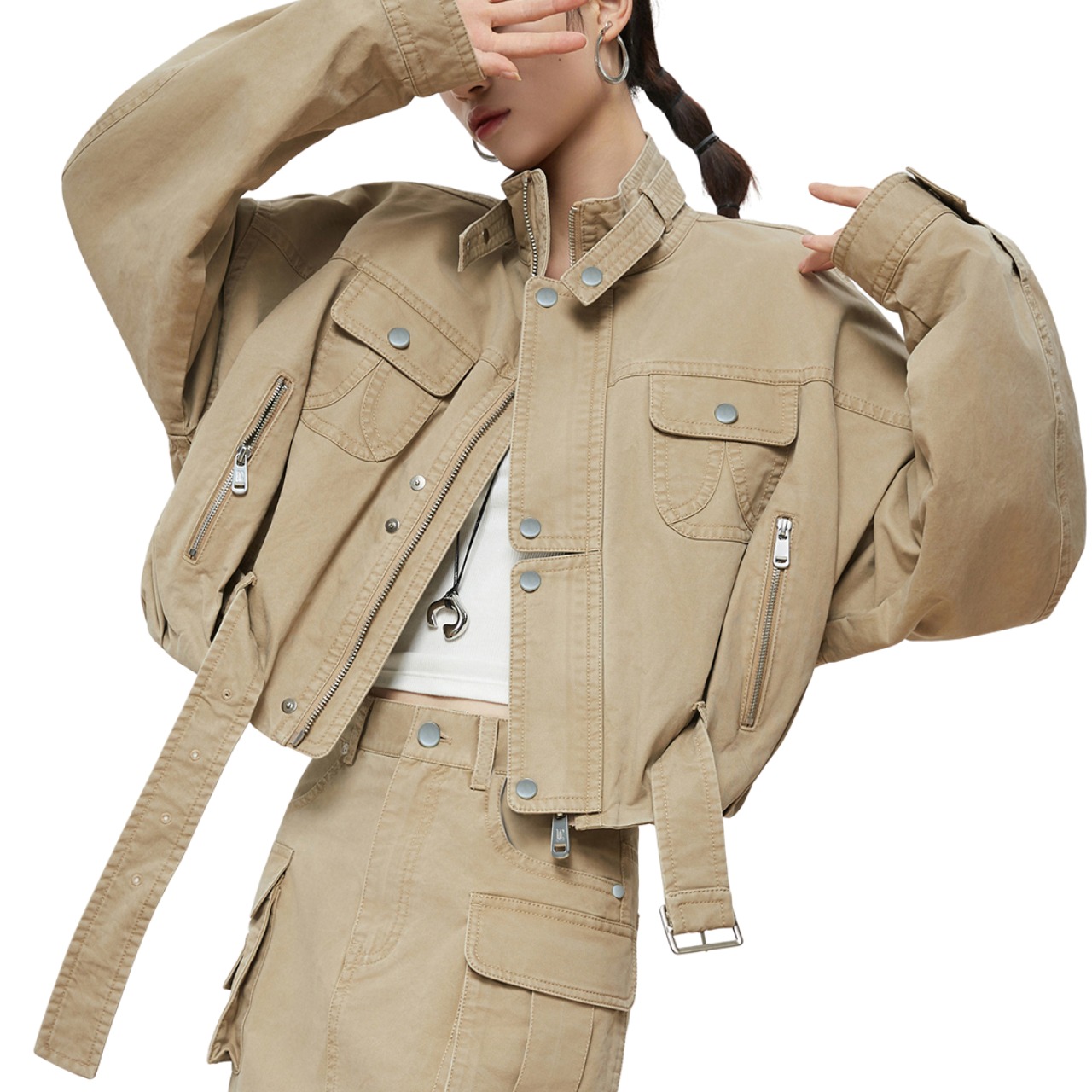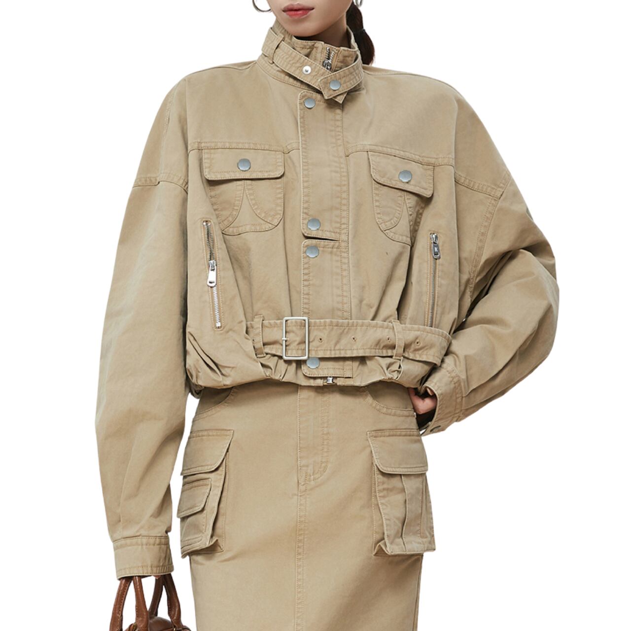 スタイルのハイネック秋ジャケットは、ユニークで存在感のあるデザインが魅力です。高めのネックラインが首元をすっきりと見せ、寒い季節でも温かく着用できるアイテムです。快適な着心地を与えつつ、カジュアルからシックなスタイルまで幅広く活用できます。このジャケットを取り入れることで、あなたのコーディネートに立体感と個性をプラスすることができます。