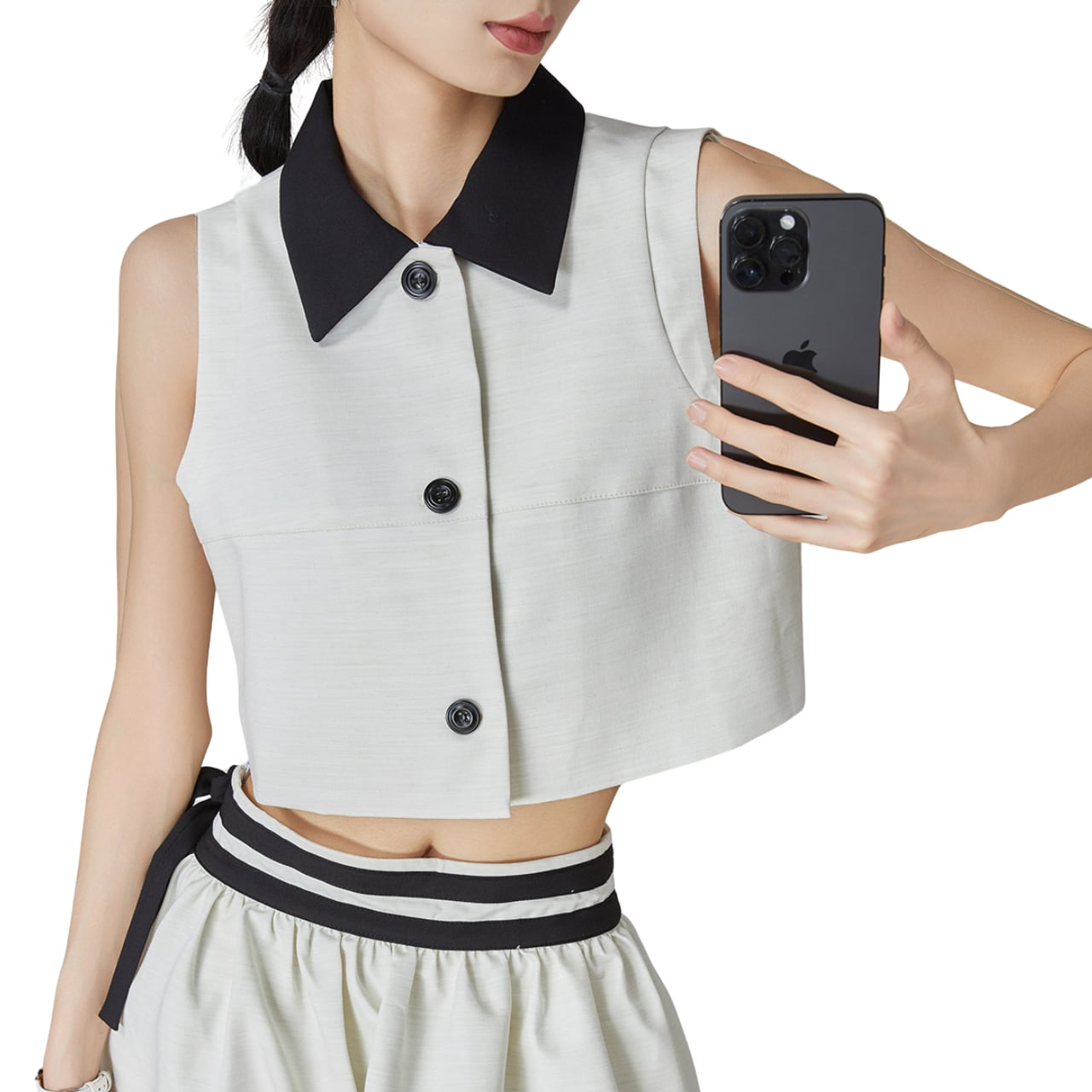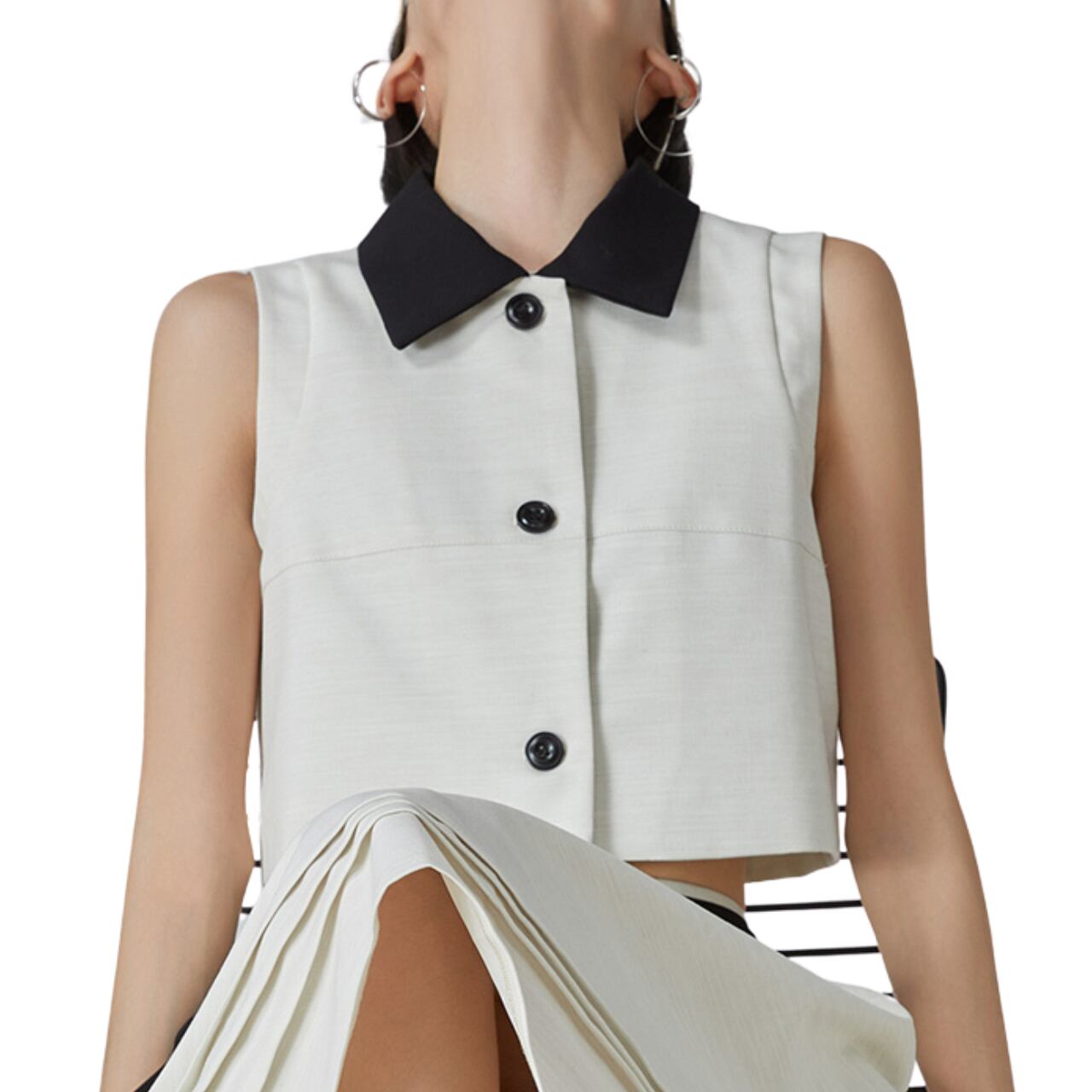このエレガントでファッショナブルなノースリーブベストは、洗練されたデザインが特徴です!スリムなシルエットが体型を引き立て、あらゆるシーンにマッチする万能アイテムです。軽やかな素材感は肌触りも良く、快適な着心地を実現しています。このベストを着ることで、シンプルながらもスタイリッシュな装いを楽しむことができます。
