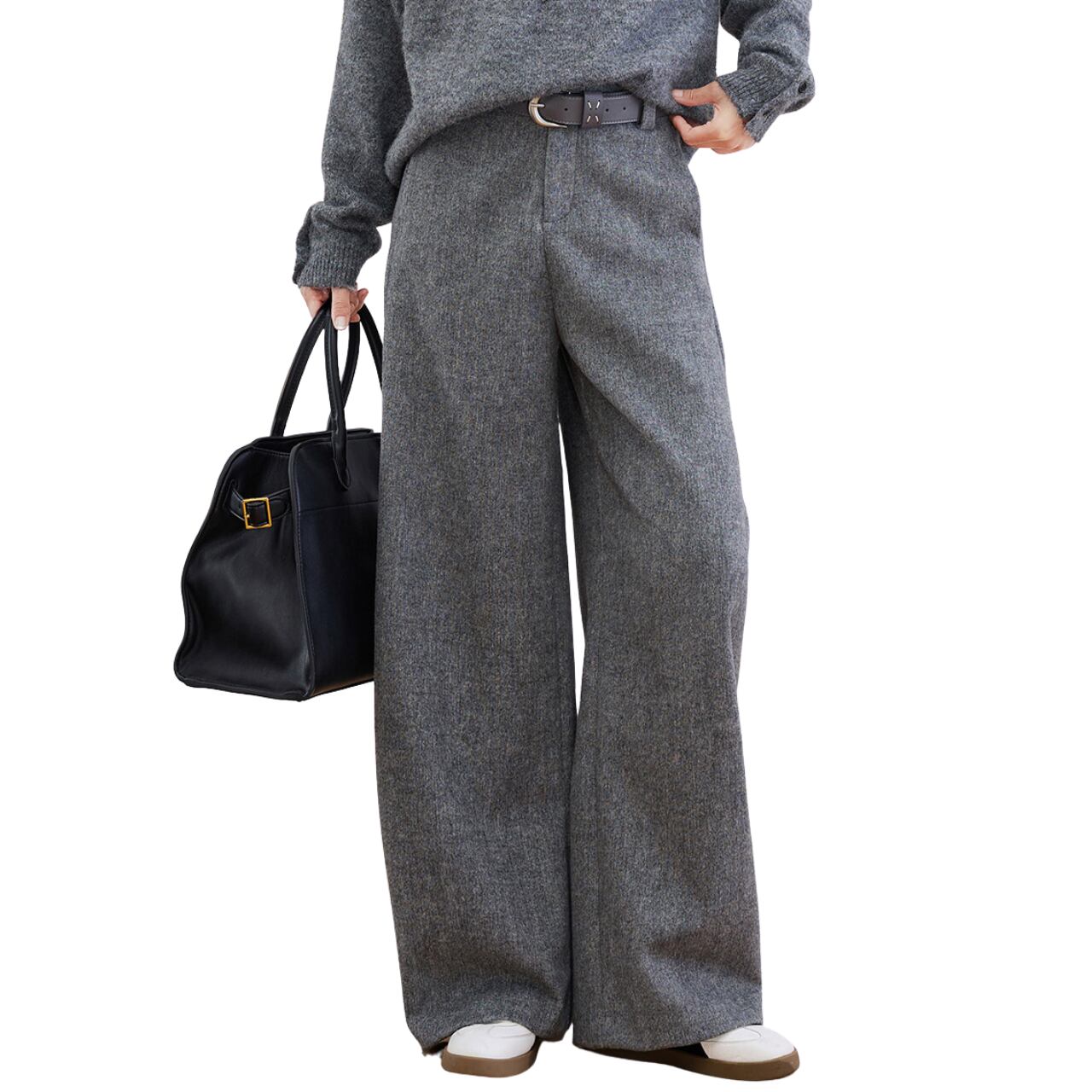 このハイクオリティなウール製のワイドレッグカジュアルスーツパンツは、洗練されたデザインとともに快適さを兼ね備えた逸品です。ワイドレッグのシルエットはリラックス感を演出しながらも、トレンド感あふれるスタイルを実現。普段使いから、ちょっとしたお出かけまで幅広く活躍し、さまざまなトップスともコーディネートが楽しめます。シンプルながらもクラス感のあるデザインが、あなたの個性を引き立てますので、ぜひお手元に取り入れてみてください。