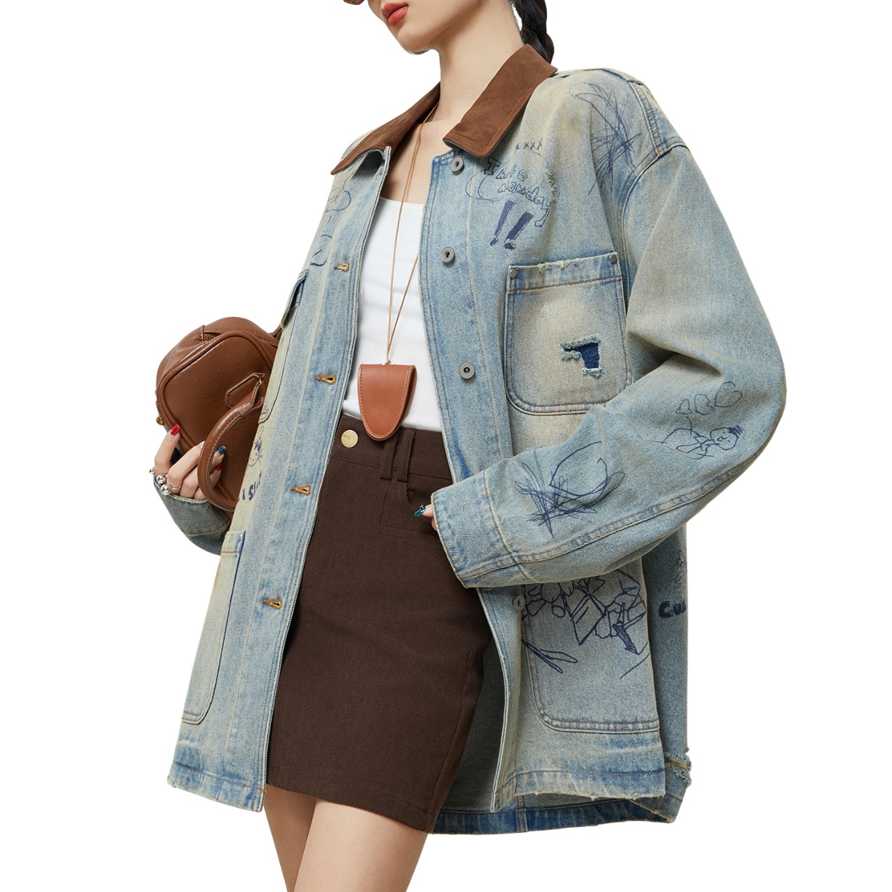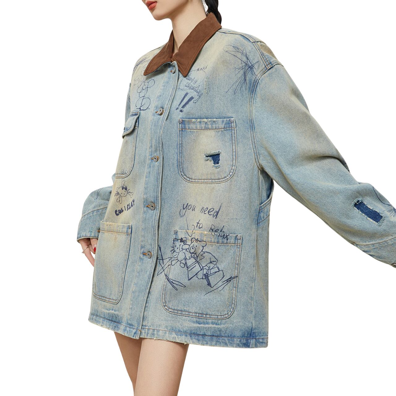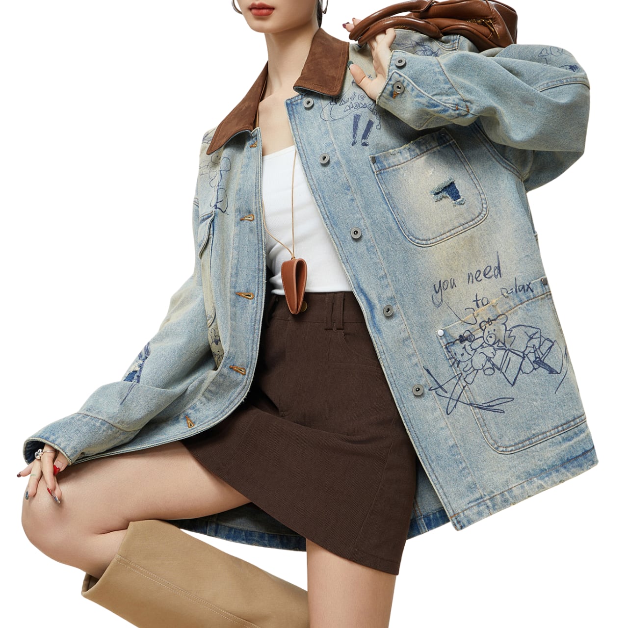このファッショナブルなポロカラーのルーズデニムジャケットは、カジュアルながらもトレンディなスタイルを実現するアイテムです。柔らかなデニム素材を使用しており、着心地も抜群です。ルーズなシルエットでリラックスした印象を与えつつ、ポロカラーのデザインがスタイリッシュなアクセントを加えています。デイリーユースに最適で、Tシャツやタートルネックとの重ね着も楽しめ、様々なコーディネートに活用いただけます。日常のカジュアルスタイルだけでなく、休日のお出かけにもぴったりの一着です。このジャケットを通じて、さまざまなスタイルを楽しんでください。