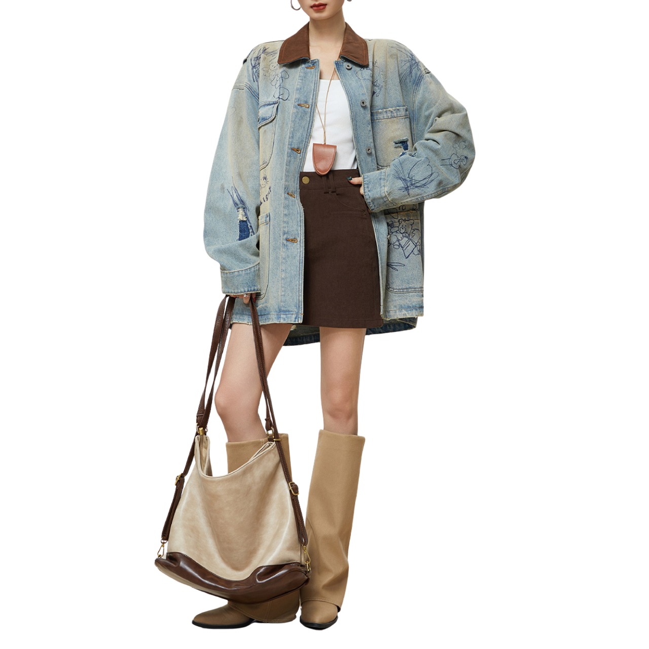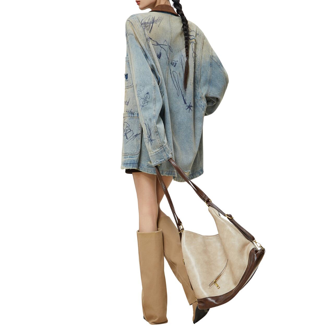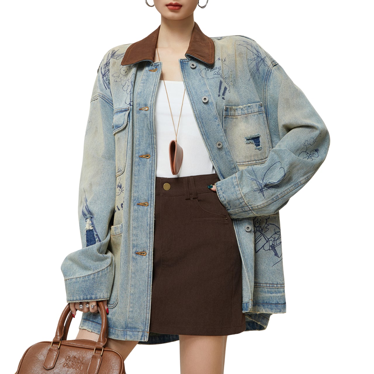 このファッショナブルなポロカラーのルーズデニムジャケットは、カジュアルながらもトレンディなスタイルを実現するアイテムです。柔らかなデニム素材を使用しており、着心地も抜群です。ルーズなシルエットでリラックスした印象を与えつつ、ポロカラーのデザインがスタイリッシュなアクセントを加えています。デイリーユースに最適で、Tシャツやタートルネックとの重ね着も楽しめ、様々なコーディネートに活用いただけます。日常のカジュアルスタイルだけでなく、休日のお出かけにもぴったりの一着です。このジャケットを通じて、さまざまなスタイルを楽しんでください。
