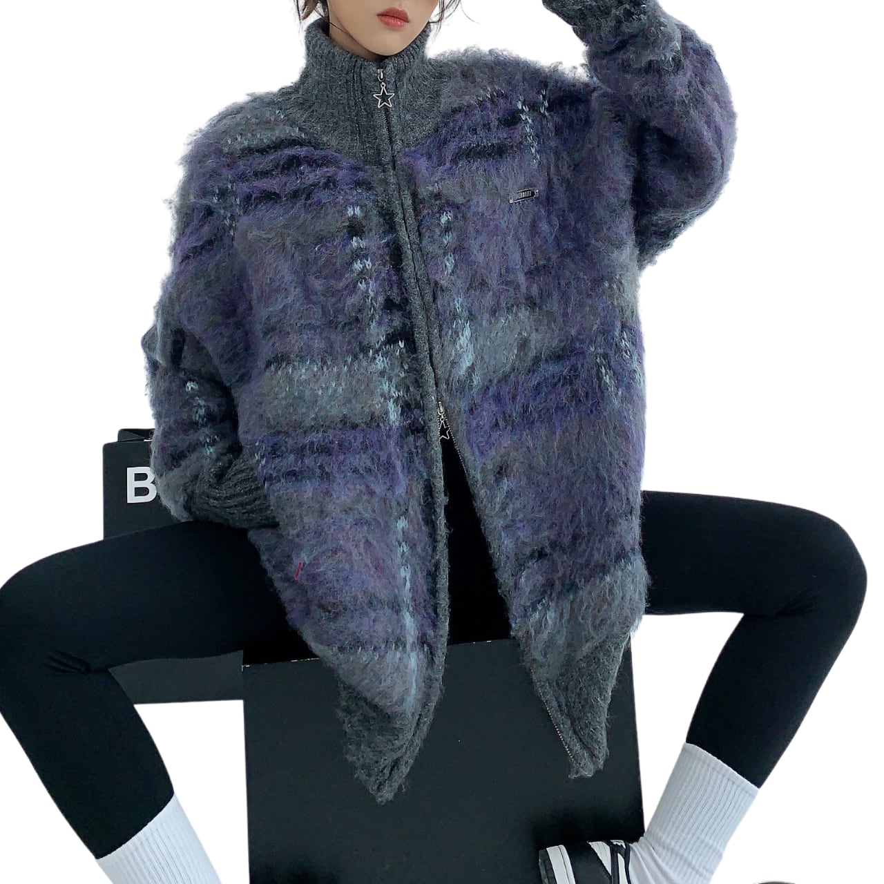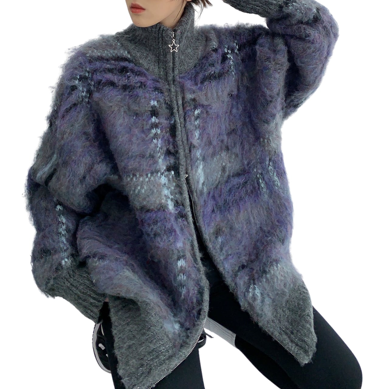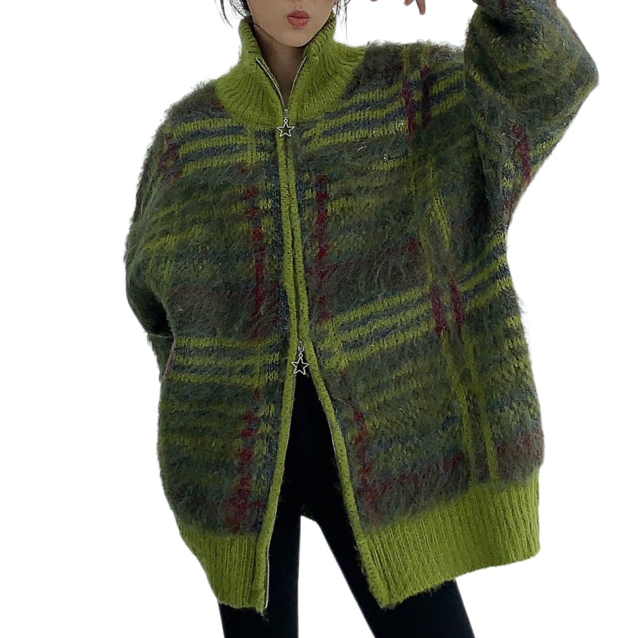Winter long-haired unique loose cardigan K00284