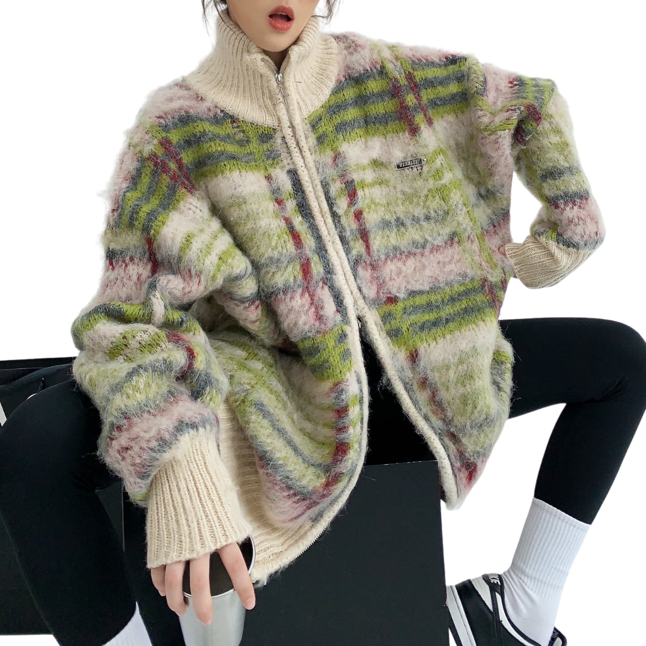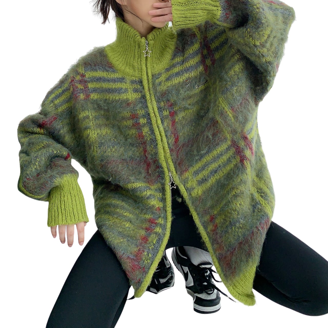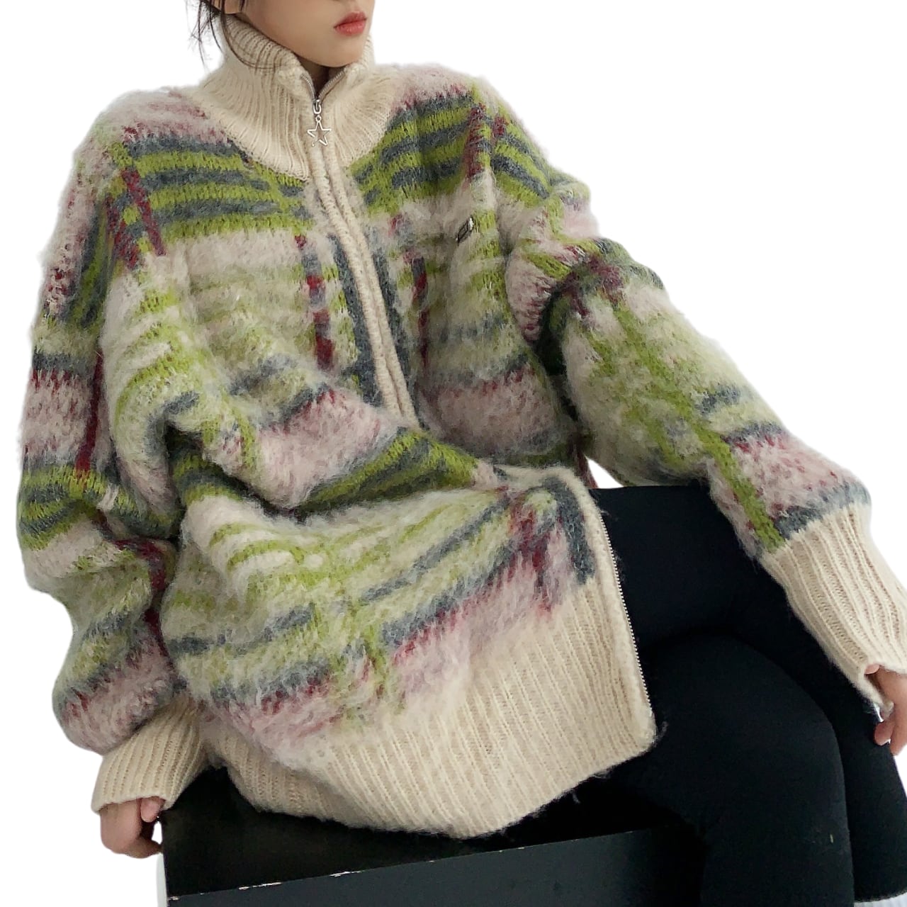 Winter long-haired unique loose cardigan K00284