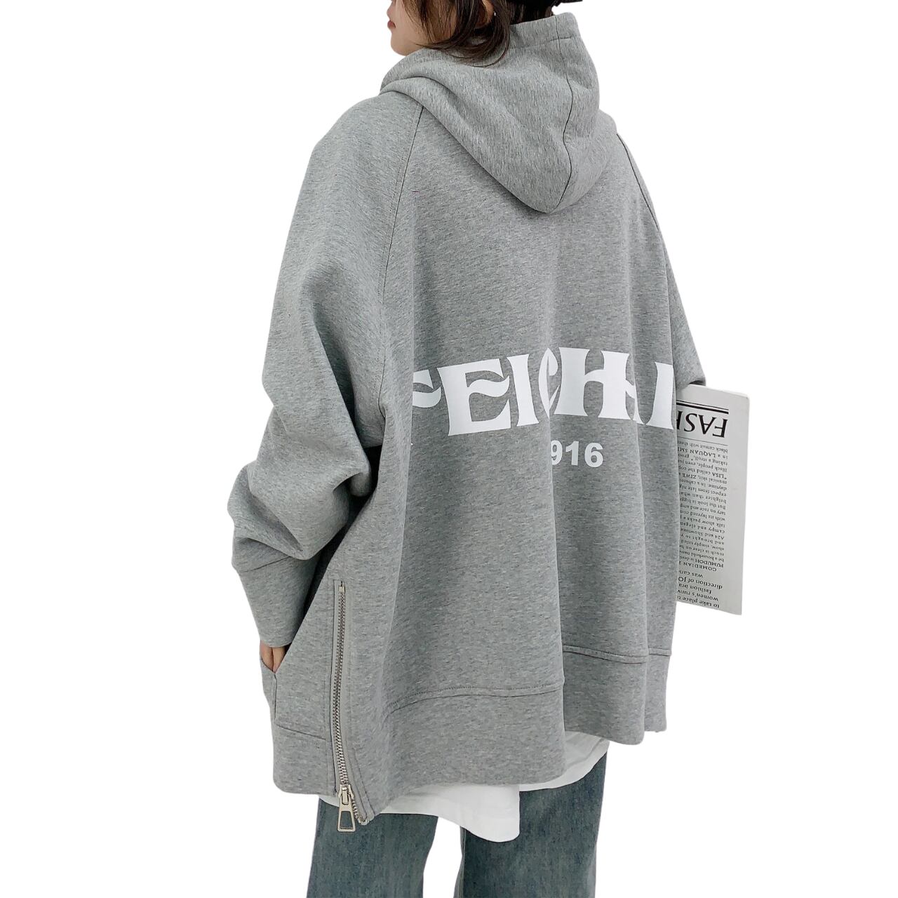 Autumn/Winter thick loose fit side zipper style hoodie K00278