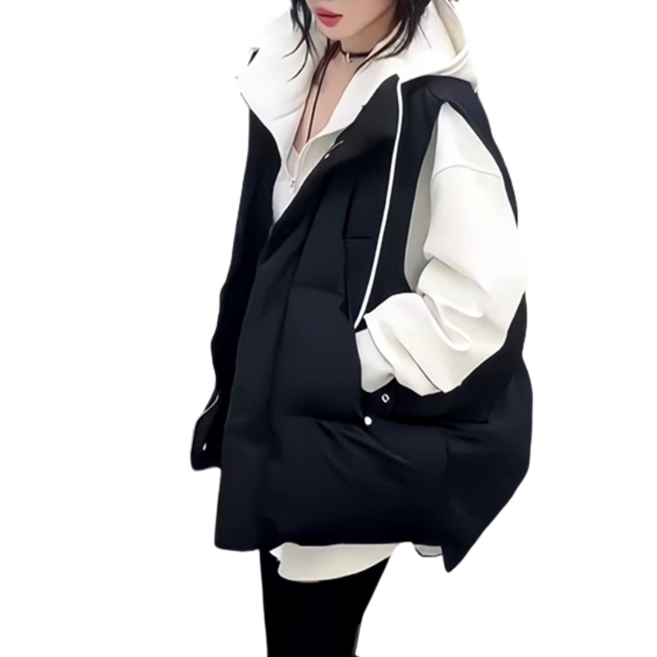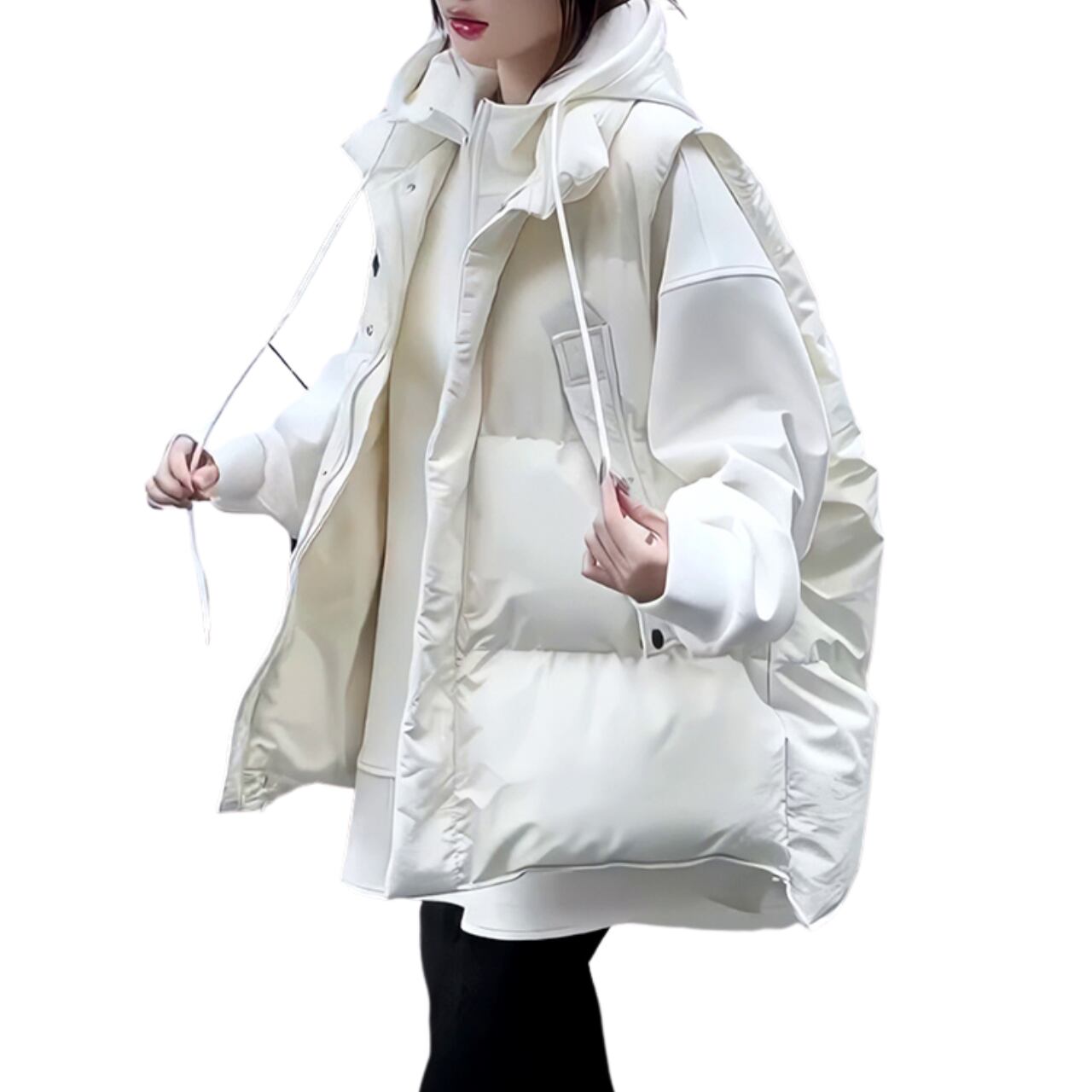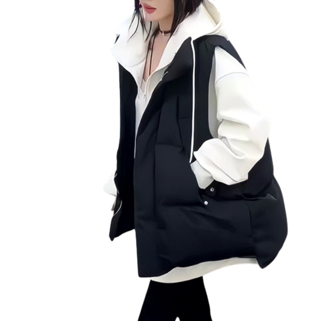 この冬にぴったりなファッショナブルなスリーブレスアウターは、スタイルと快適さを見事に両立したアイテムです。軽量ながらも保温性に優れており、多様なコーディネートに対応できます。ルーズフィットのデザインは、体型を気にせず自由に着こなせ、リラックス感を演出します。カジュアルな日常使いから、お出かけシーンまで、幅広く役立つこのアウターを羽織れば、冬の装いも一層華やかに仕上がります。