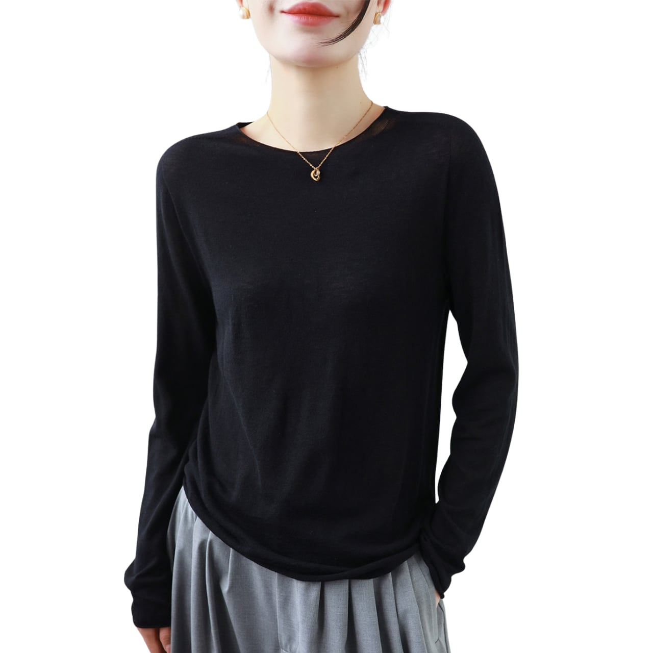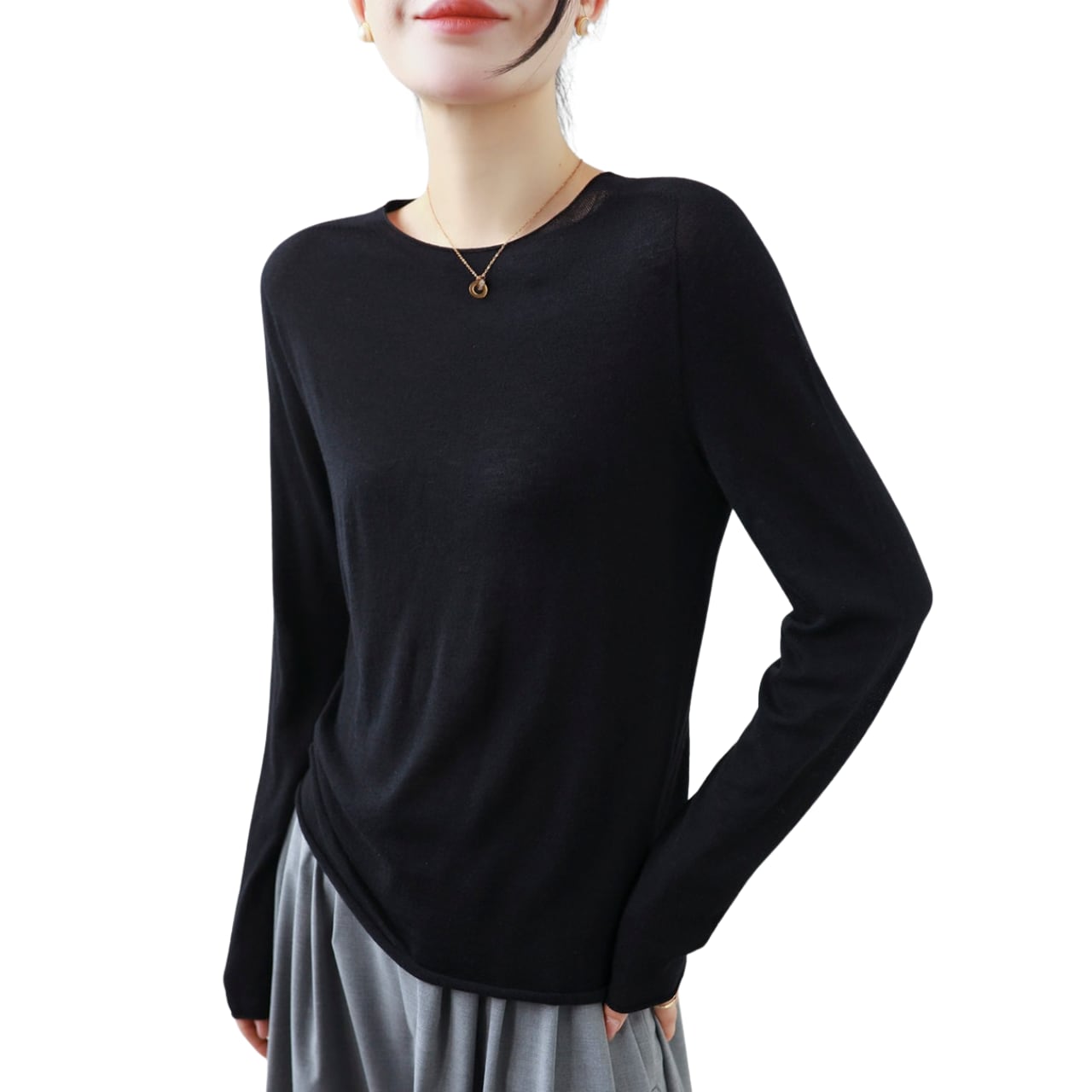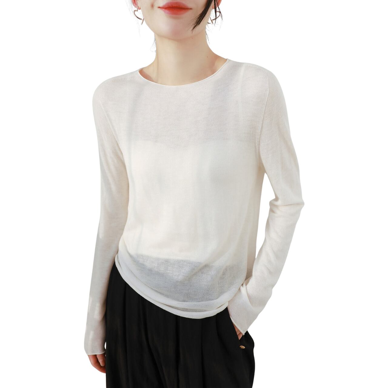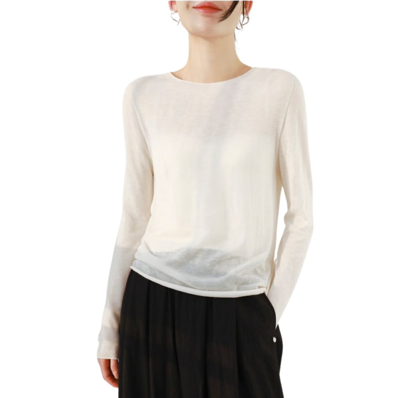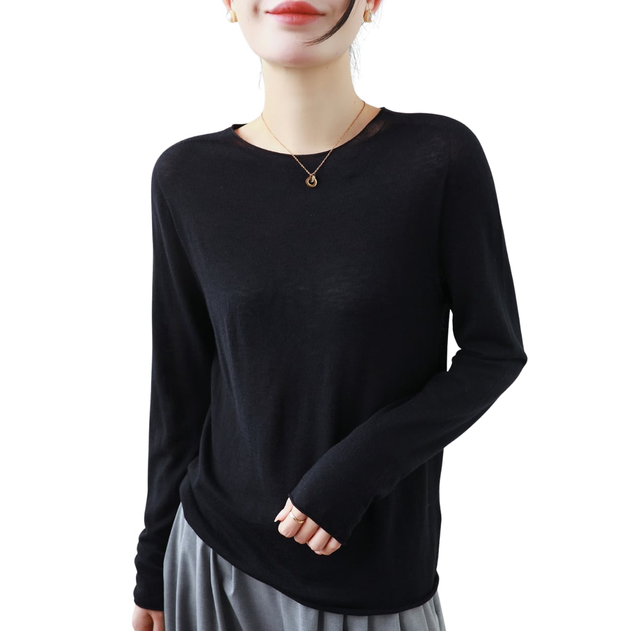 この薄手のシームレスラウンドネックウールセーターは、シンプルでありながらスタイリッシュなデザインが魅力です。滑らかなウール素材は肌触りが良く、温かみを感じさせる一枚です。シームレスな作りはストレスフリーな着用感を提供し、幅広いコーディネートに合わせられます。デイリーユースからカジュアルなお出かけまで、幅広いシーンで活躍すること間違いなしです。この秋冬シーズンのワードローブに欠かせないアイテムとして、ぜひお試しいただきたい一品です。