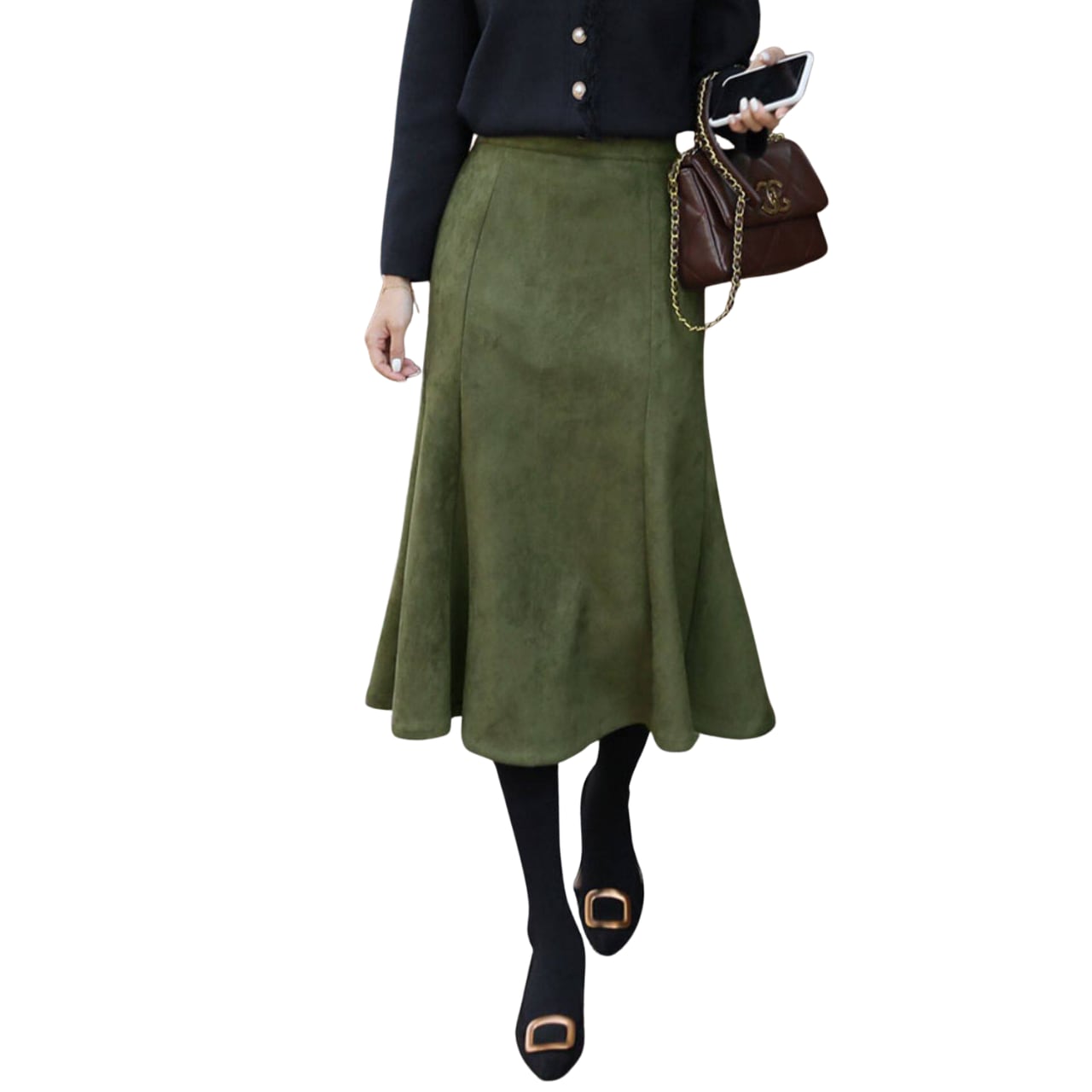 A-line slimming hip-concealing mid-length fishtail skirt K00323