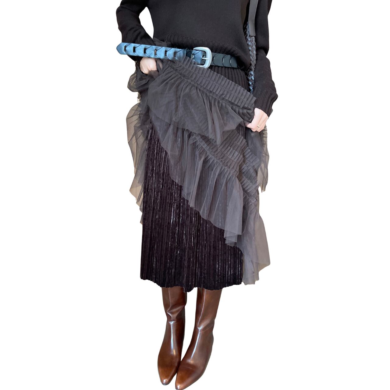 このスカートは、2層構造でボリューム感を持ちながらも、優雅なシルエットが魅力のアイテムです。フレアなデザインが女性らしさを引き立て、さまざまなトップスと組み合わせやすくなっています。軽やかな素材感が心地よく、日常使いから特別なシーンまで幅広く対応できるこちらのスカートは、あなたのワードローブに欠かせないアイテムとなることでしょう。特別な日のコーディネートにもぴったりです。